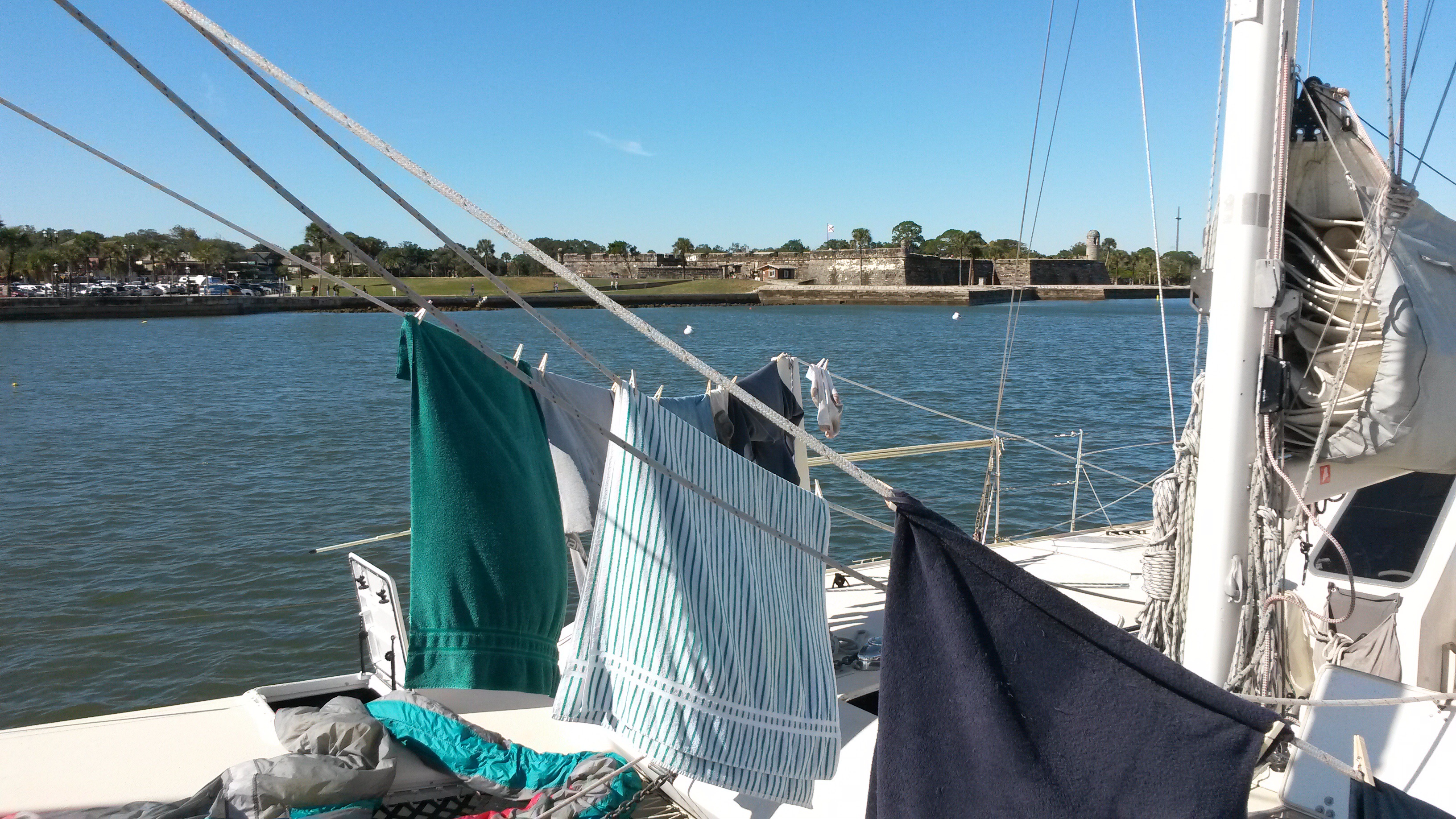 Sailing along the Florida coast south from St Augustine, we had one of the most delightful sailing days ever, and the forecast was for continued clear skies and 15-20 knot favorable winds. As the sun set we took down our spinnaker and sailed with the more easily controlled “screecher” (a big forward sail, that can be rolled up with minimal fuss if the wind gets too heavy).