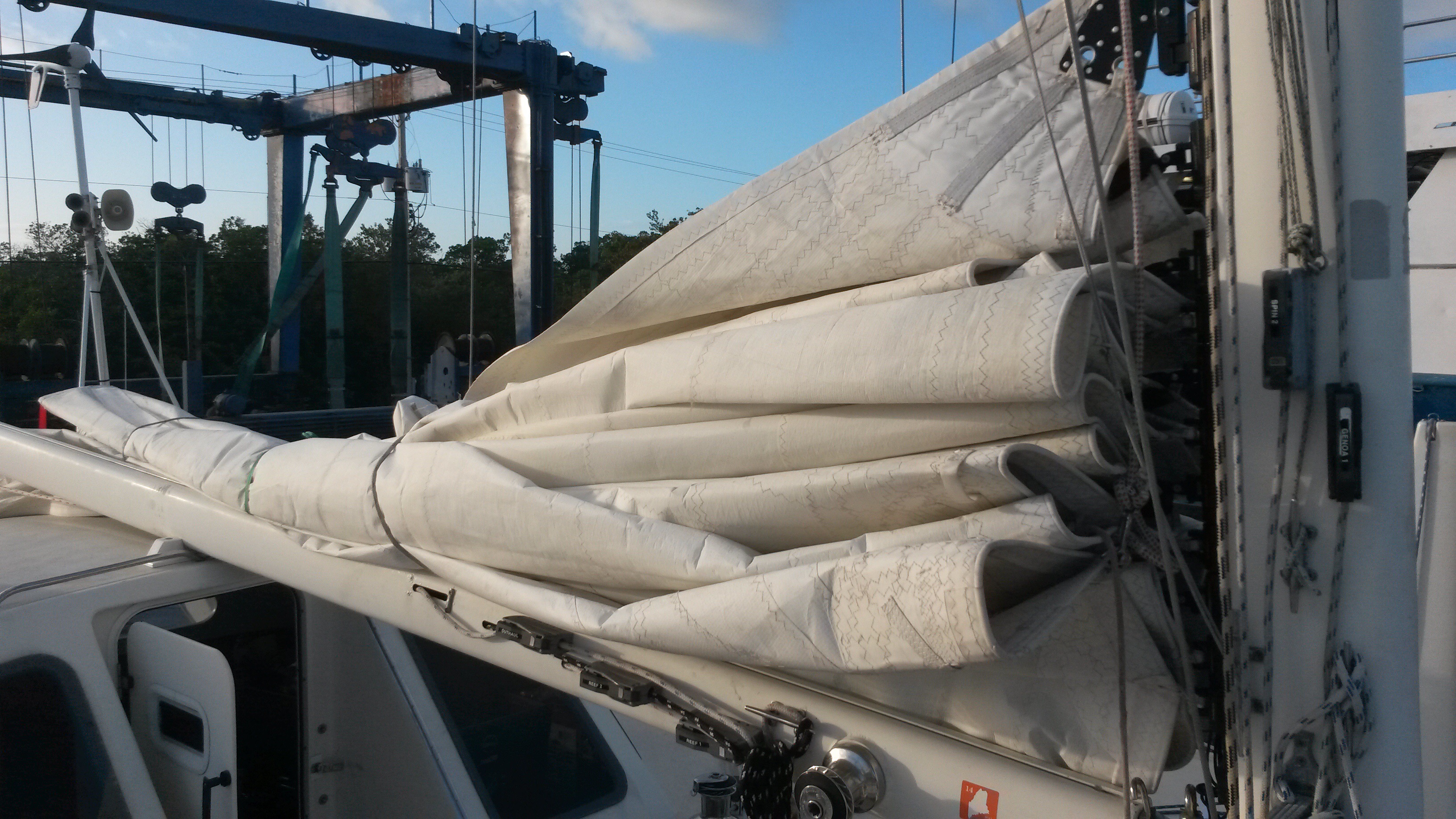 I’m not sure! There is another way to pick up a wide boat, which is with a crane. The boat yard probably would not have been able to do this right away, and I’m sure it would have cost us more, so I’m glad we didn’t have to experience this alternative. Probably the first thing we would have done is call other boat yards in the vicinity to see if they have a lift wide enough for us. But I haven’t seen another yard with greater capacity, so I think we were lucky to be referred to the yard we’re at.