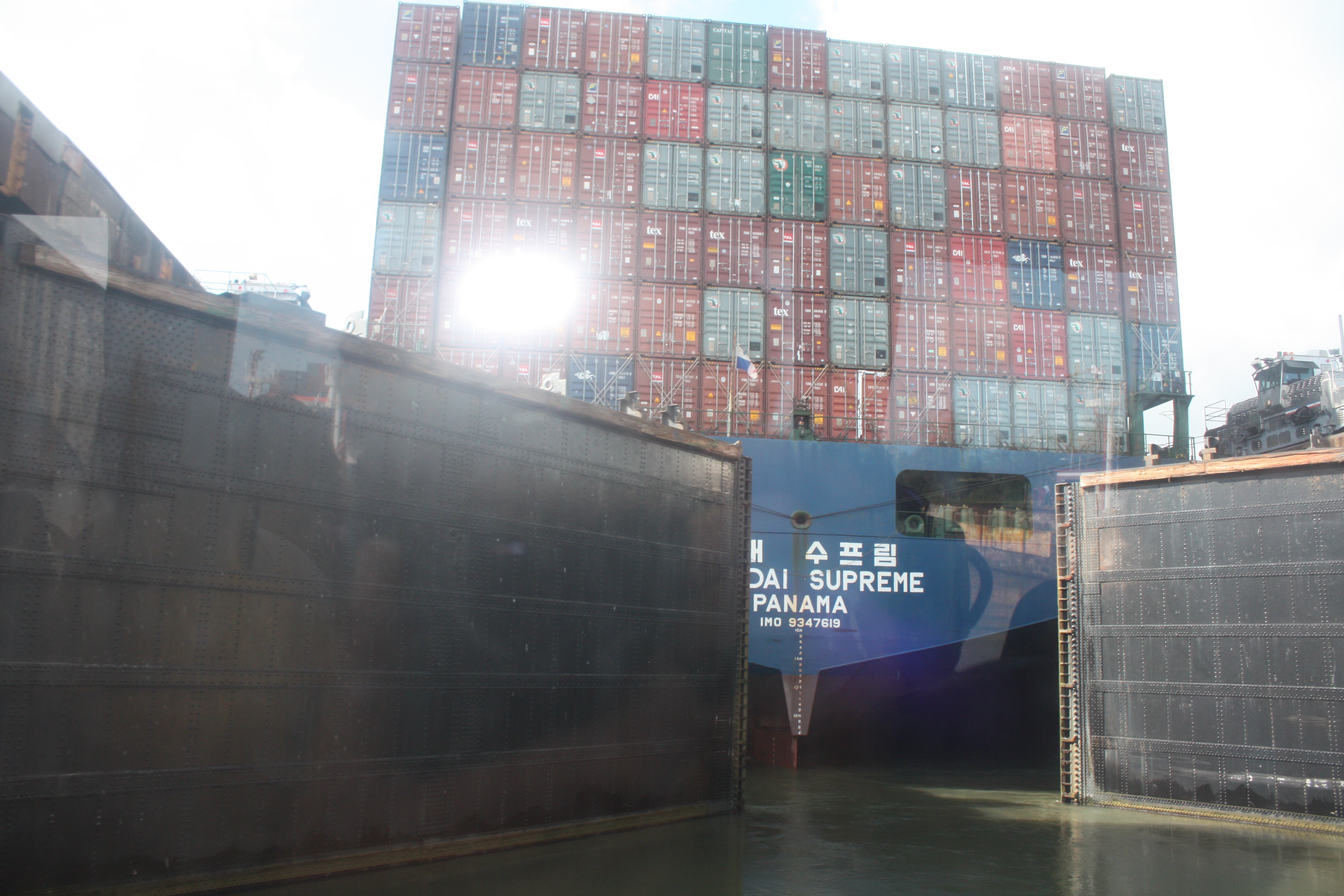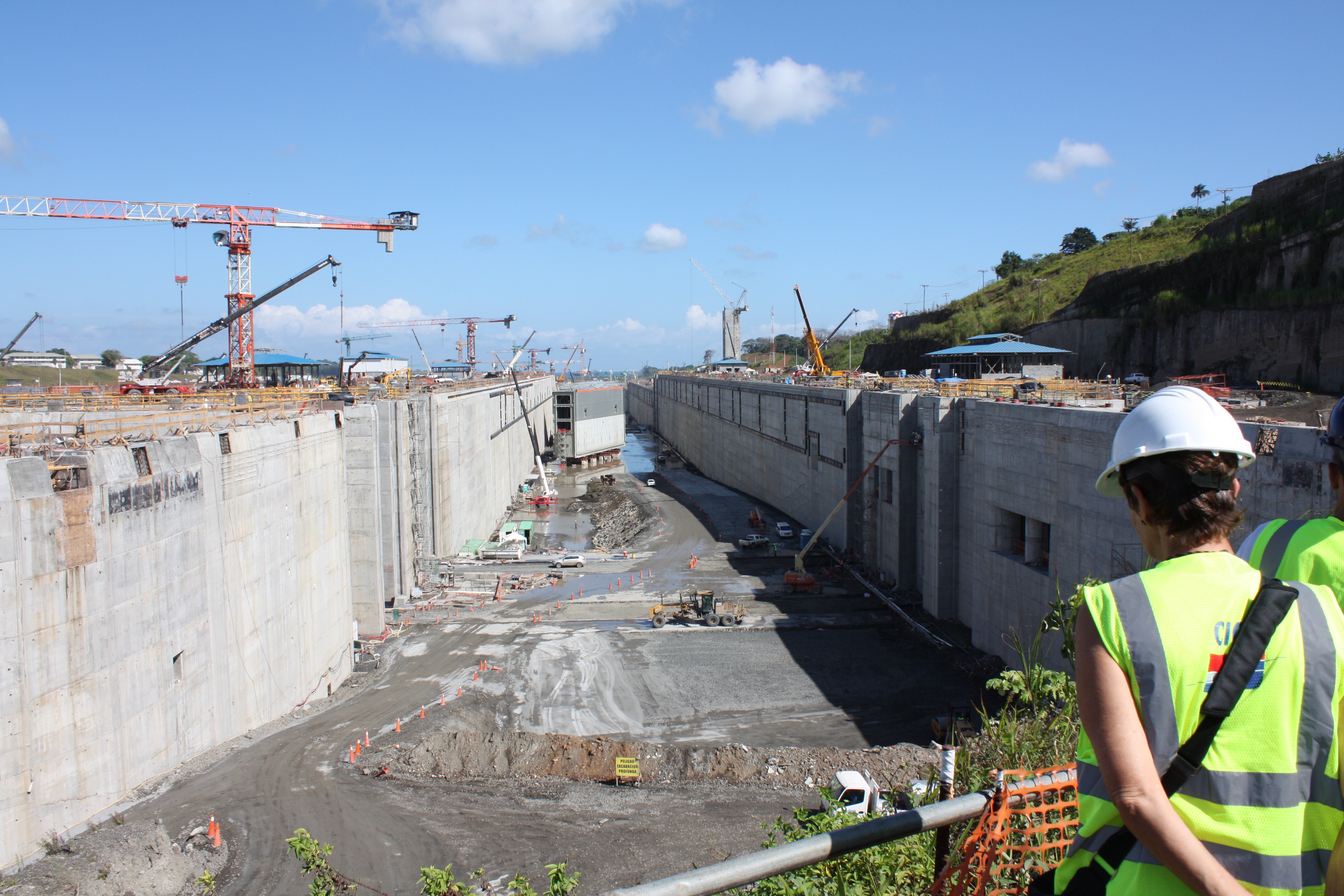 A project is underway to build new, larger locks alongside the existing ones, to accommodate larger ships. (And to facilitate maintenance of the old locks, since it will become possible to close them down when needed, without closing the Canal entirely.) It was hoped that the project could be completed in 2014 for the 100th anniversary of the original Canal opening, but naturally there have been some delays. It is now expected that construction will complete this year, and it will open for commercial use next year. End of background.