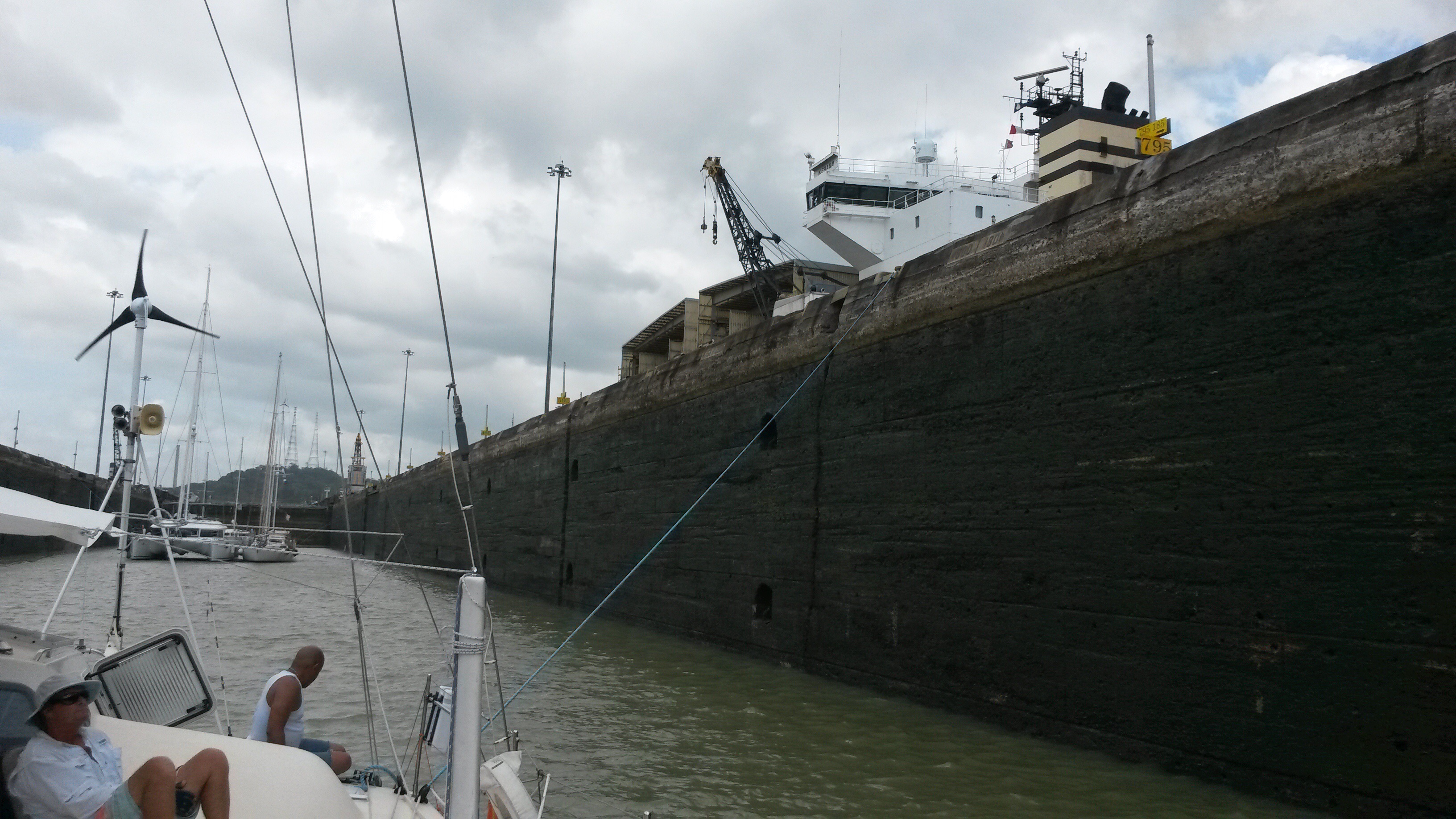 Water now up in Gatun, and you can see a ship waiting to enter the lock behind us.
