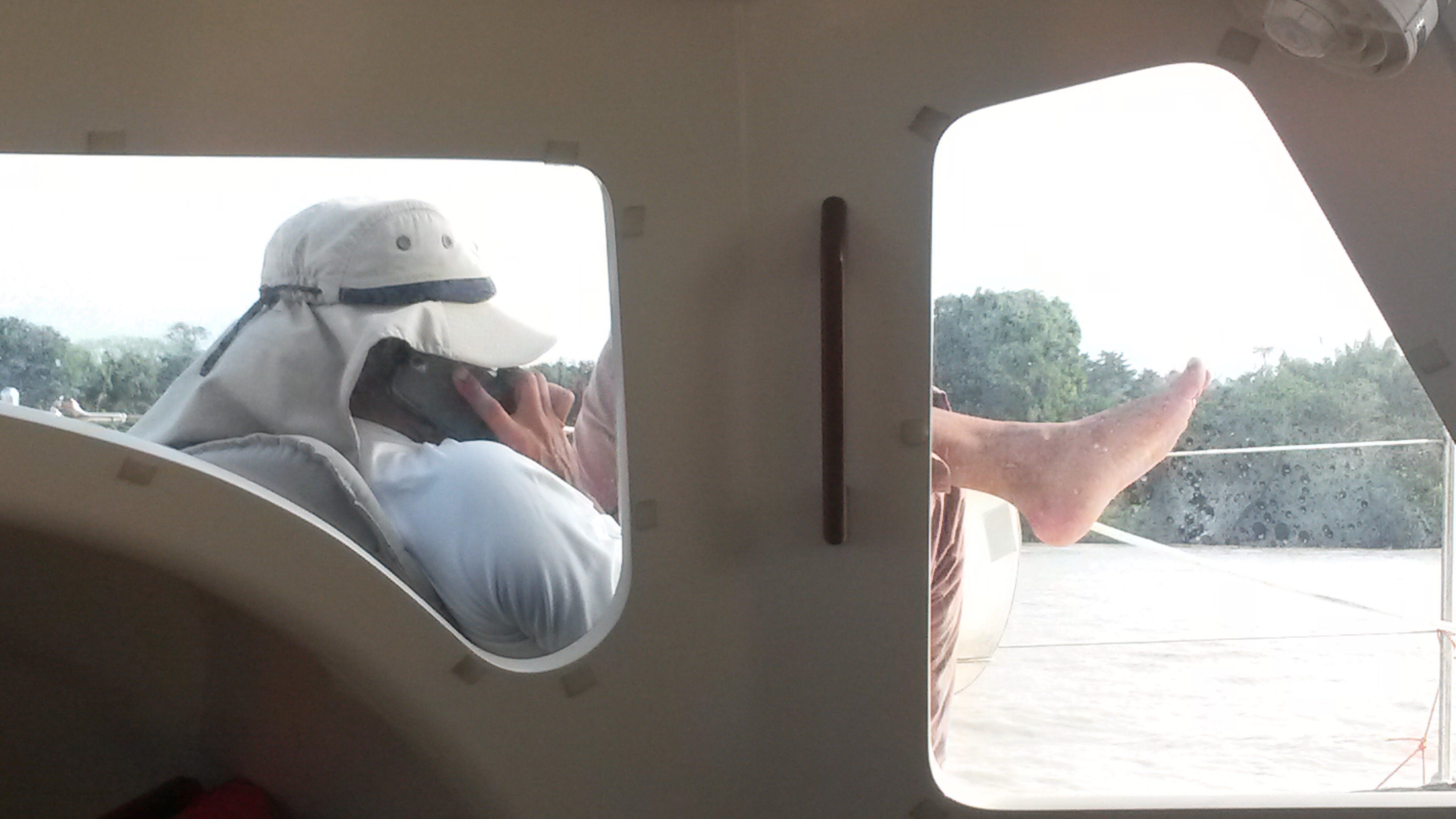 In the morning after anchoring for the night in Gatun Lake, we had 3+ hours of motoring to the next set of locks. Not much for our pilot/advisor to do…