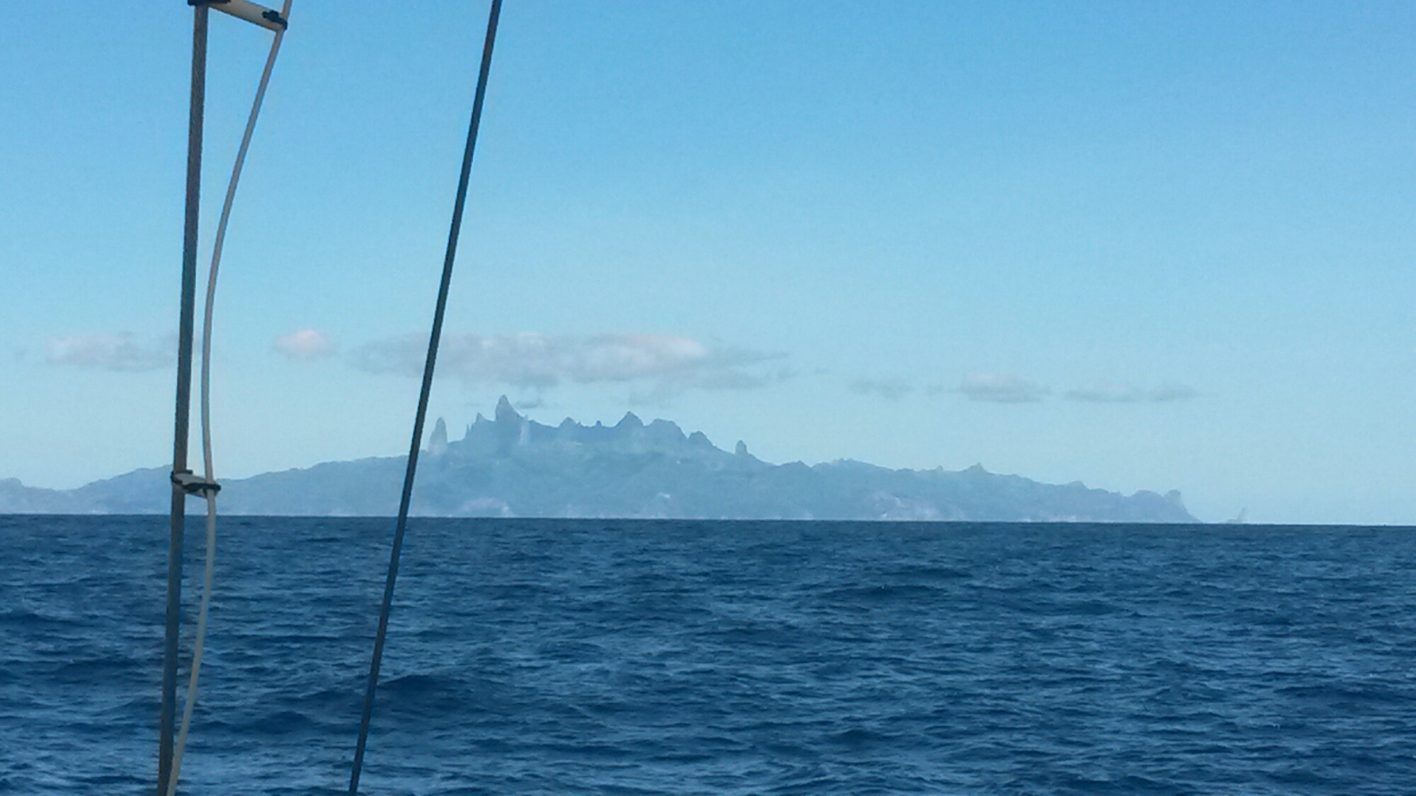 Sailing past Ua Pou again as we depart.