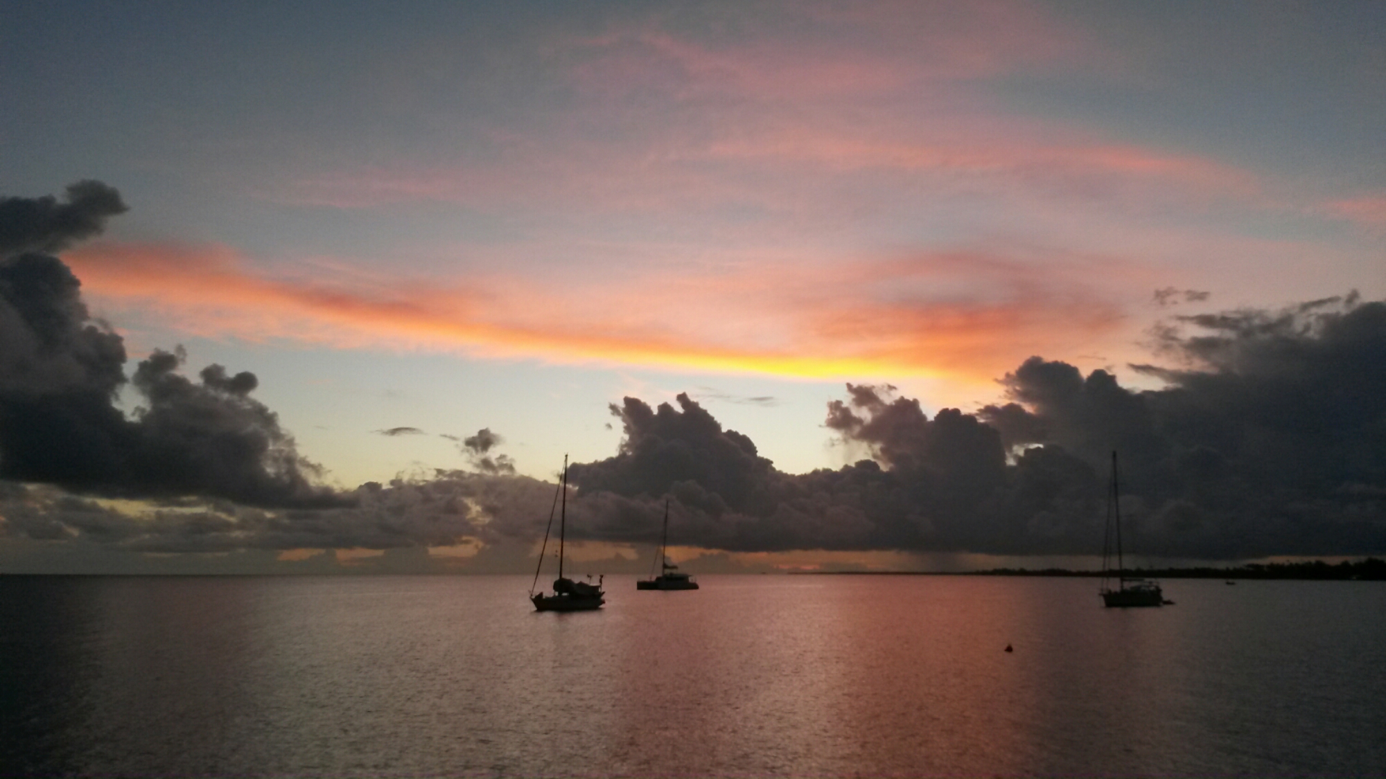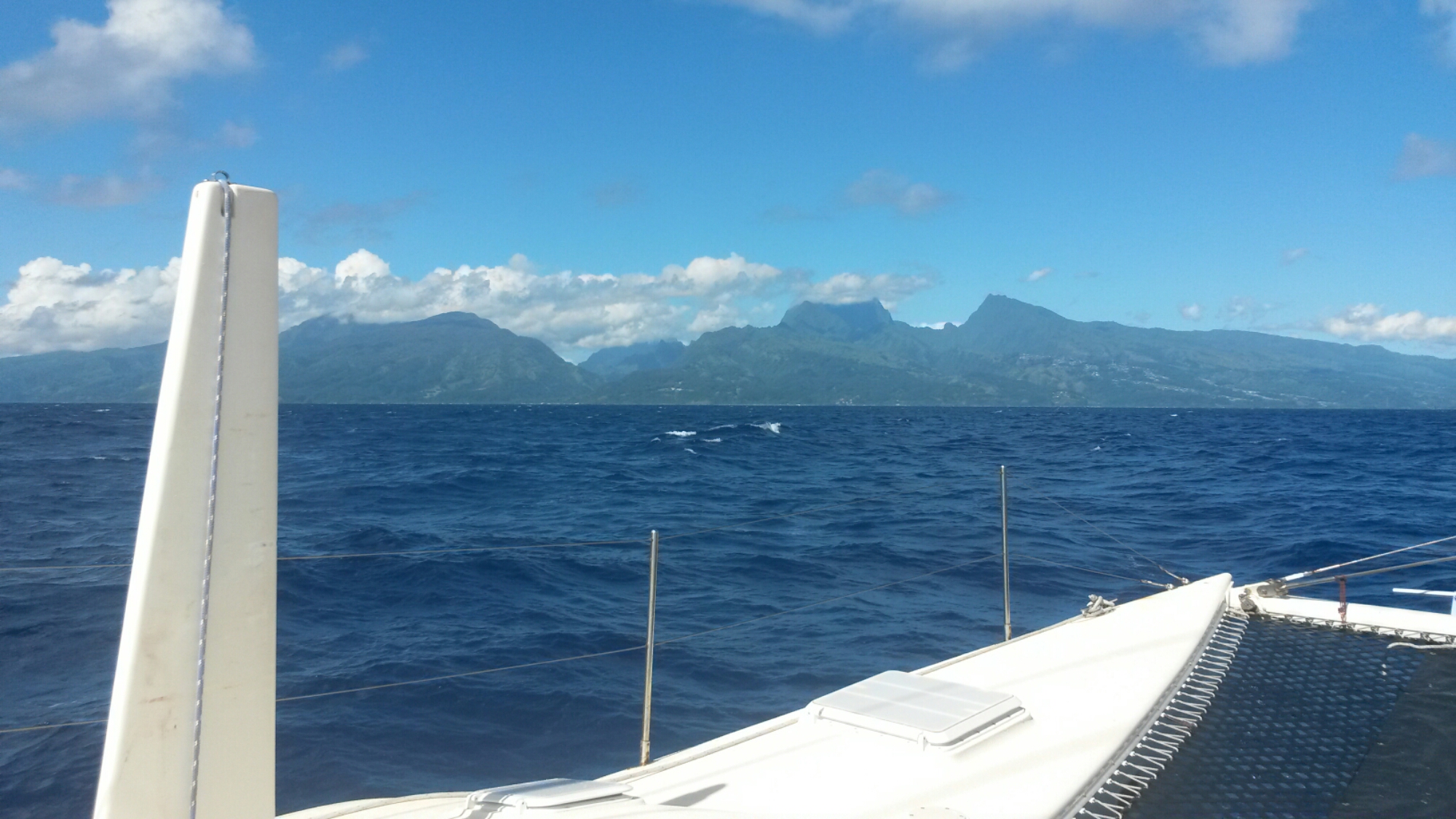 Yesterday we (Bill, Hallie and I) left Tahiti and sailed/motored the 10 miles or so to Mo’orea, where we could anchor out behind the reef, and get away from the city. That was a relief, but this anchorage leaves a lot to be desired, so we’ll get underway shortly to explore another part of the island.