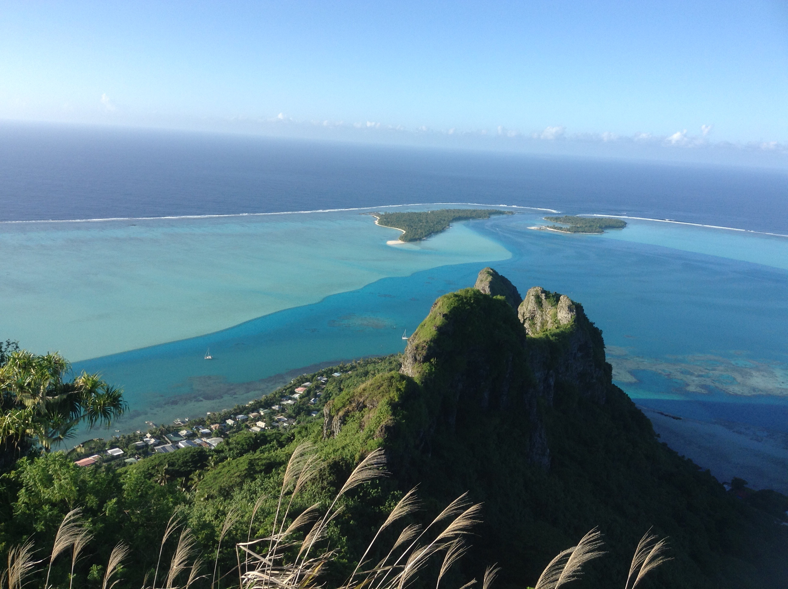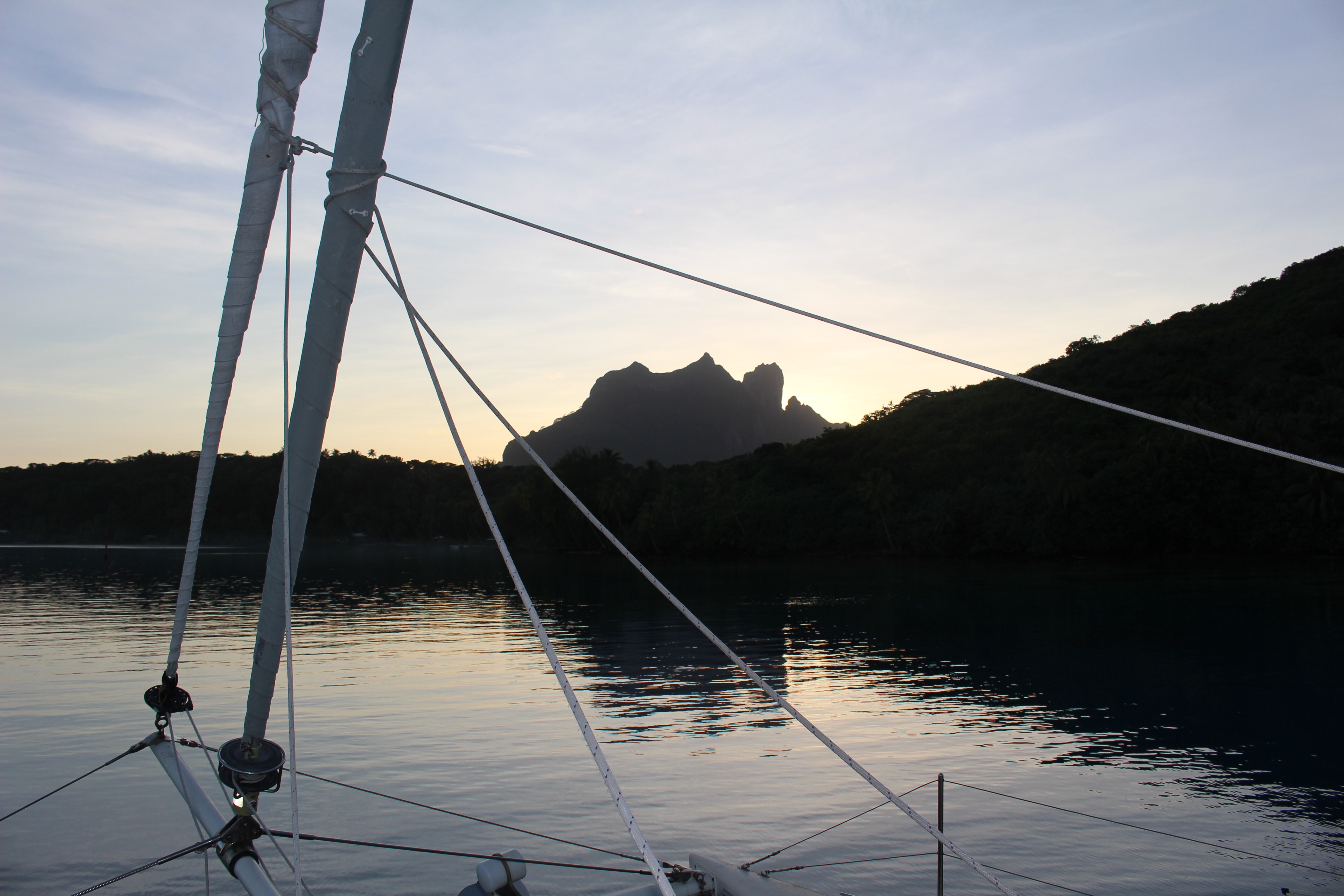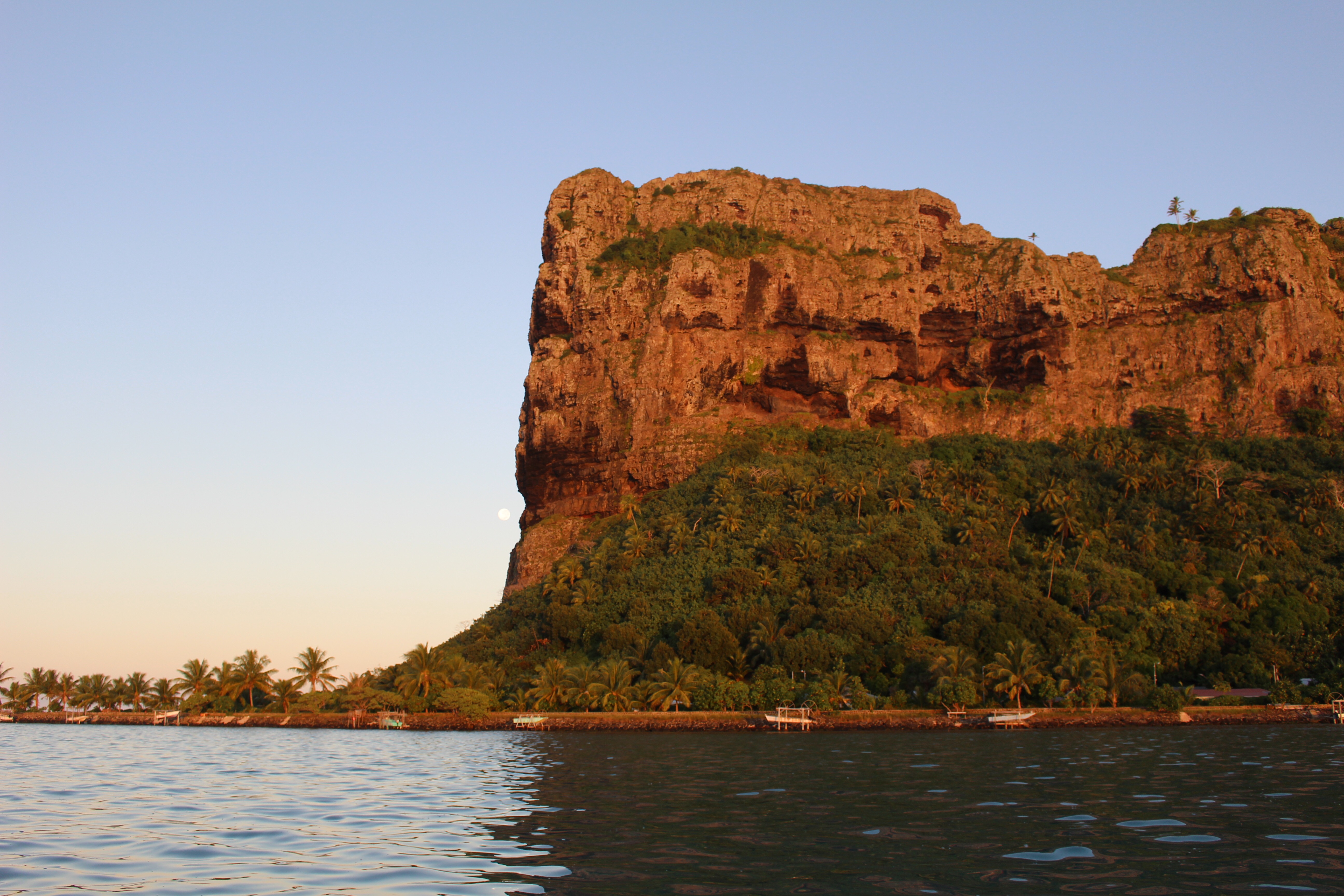 And then the kicker is that we are the only yacht here! I realize the description of the pass puts sailors off, but I certainly didn’t expect to have this amazing island and gorgeous lagoon all to ourselves. Oh, and to top it off it is a full moon rising over the reef and shining on the cliffs. I’m thinking along the lines of the Maine state slogan, “Maupiti – the way life should be!”