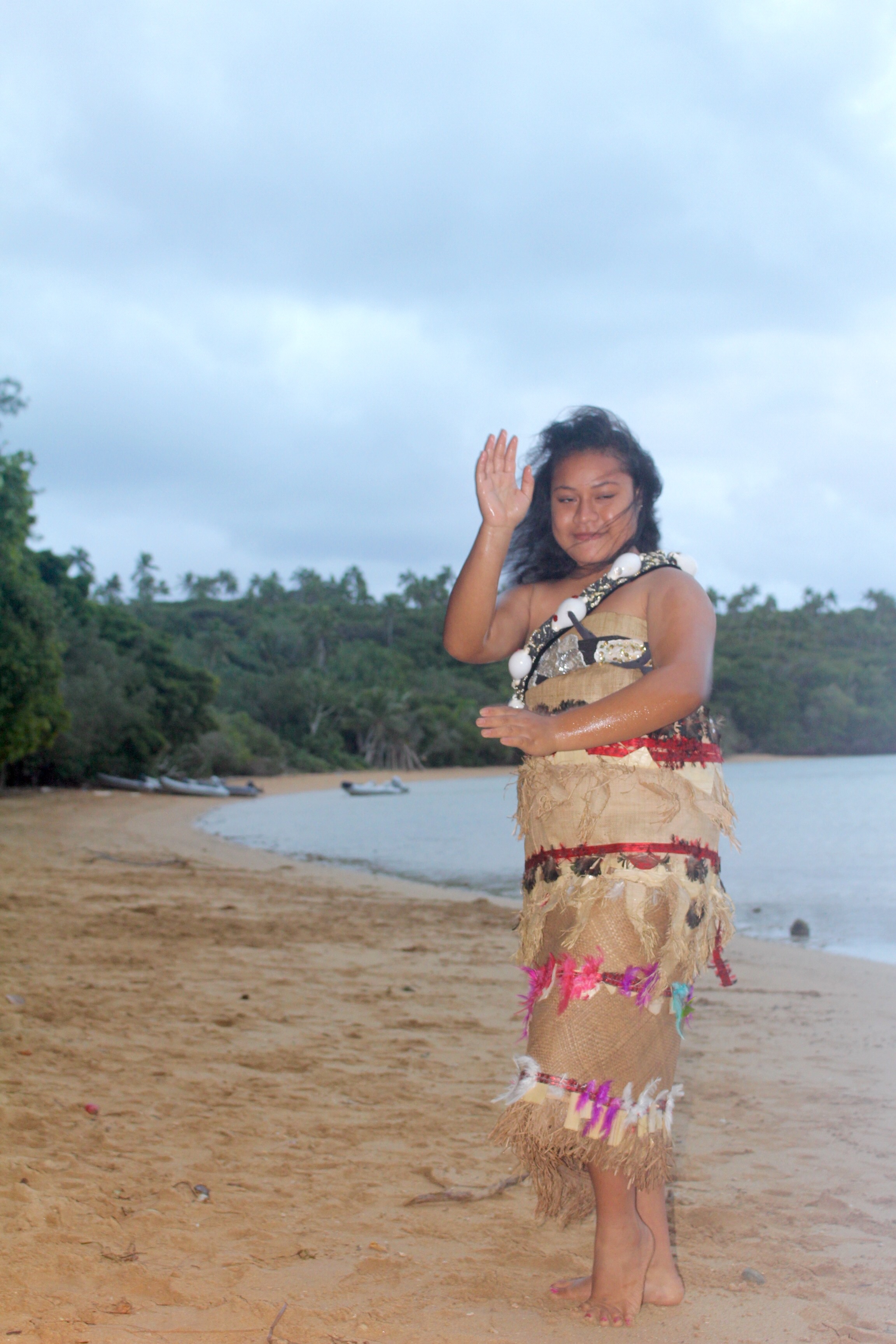 The rest of us soon followed ashore, and were provided what truly qualified as a feast. There is only the one family on the island, yet they managed to prepare at least a dozen different dishes for twenty hungry people. Plus Dad played guitar and sang, with Mom accompanying on vocals, and the girls did traditional dancing.