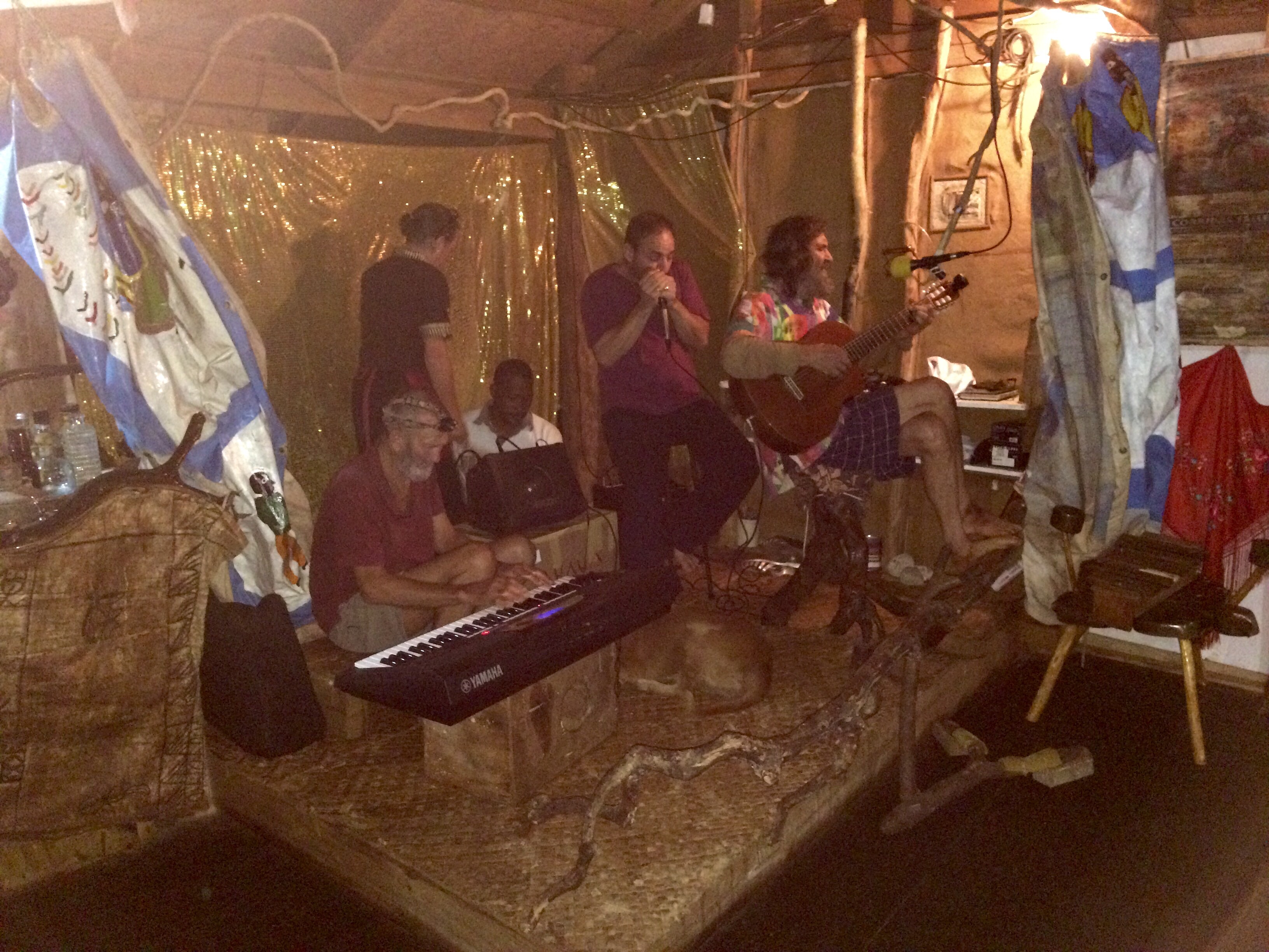 And then the shower curtains were pulled aside, and we had a three person band. Flamenco? Latin Jazz? No, hard hitting blues. Oh, Baby. In Spanish. Or was it? I don’t know — the vocalist (the cook’s husband, I think) belted out lyrics that occasionally were English, and maybe some was Spanish and some was made up as he went. It didn’t matter, because we were in the Star Wars bar scene. They did do a couple of Latin beats, with the cook joining in on maracas.