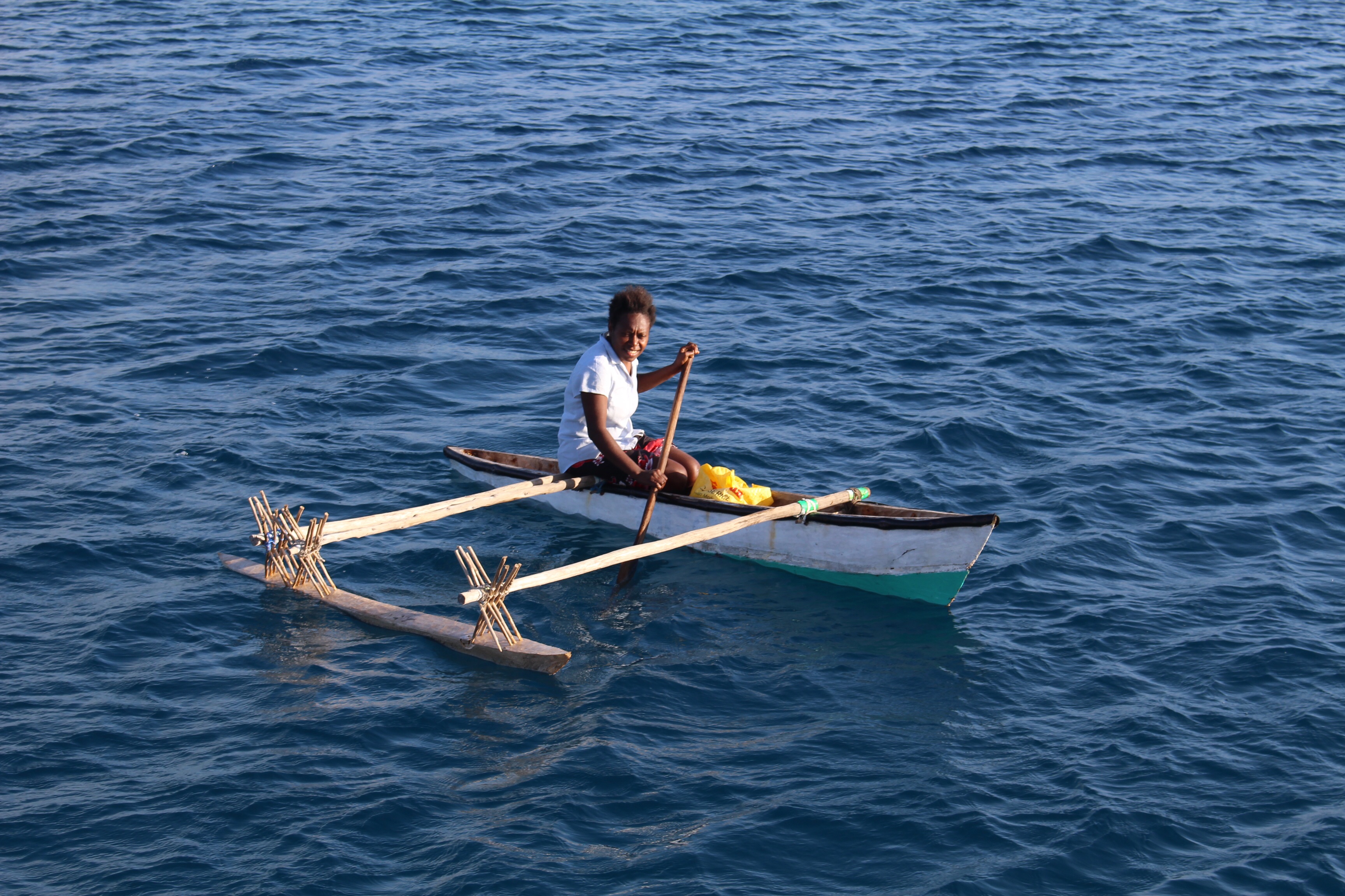 It’s a quiet night now in the bay. There are a few lights on shore — some huts have solar cells for a light and a DVD player, and there are a few people on the beach with flashlights. I can smell the smoke from fires ashore. I wish I could live in this village for a month, to learn what it is really like. Everything seems very communal…shared…easygoing. Everyone seems happy. Is there no sense of scarcity, like we-who-have-everything are so familiar with? Or is there another layer beneath the surface, that we can’t see as we sail on by?