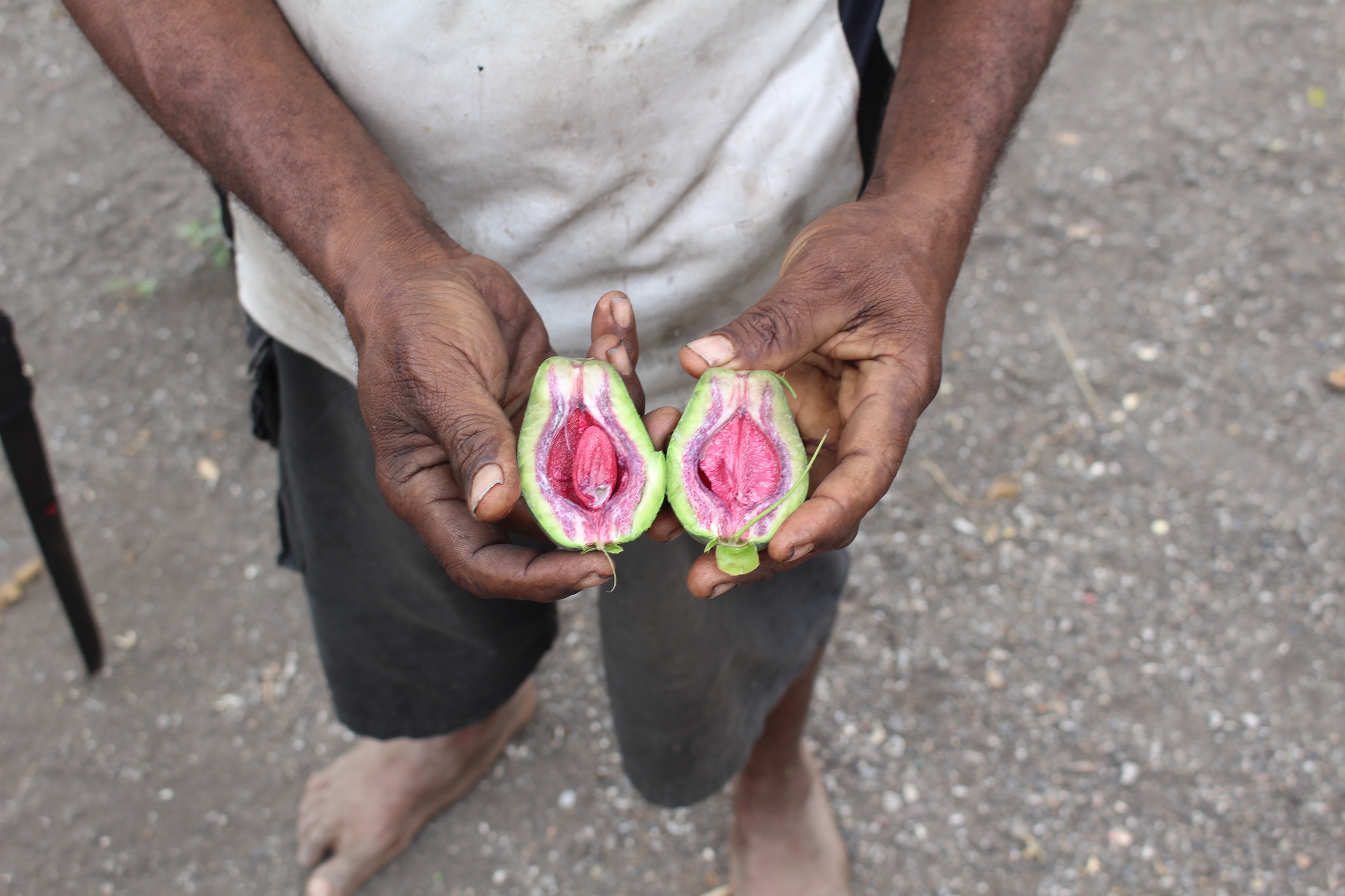 Rummaging below, what I found was my wool fisherman sweater, that I have owned for decades, but hardly ever worn. It may be TOO warm for this latitude, but it felt right to pass it on to Stephanie, and I did. We came away with a couple pamplemousse, a coconut, a photo, and a pleasant feeling of passing something along…releasing some positive energy.