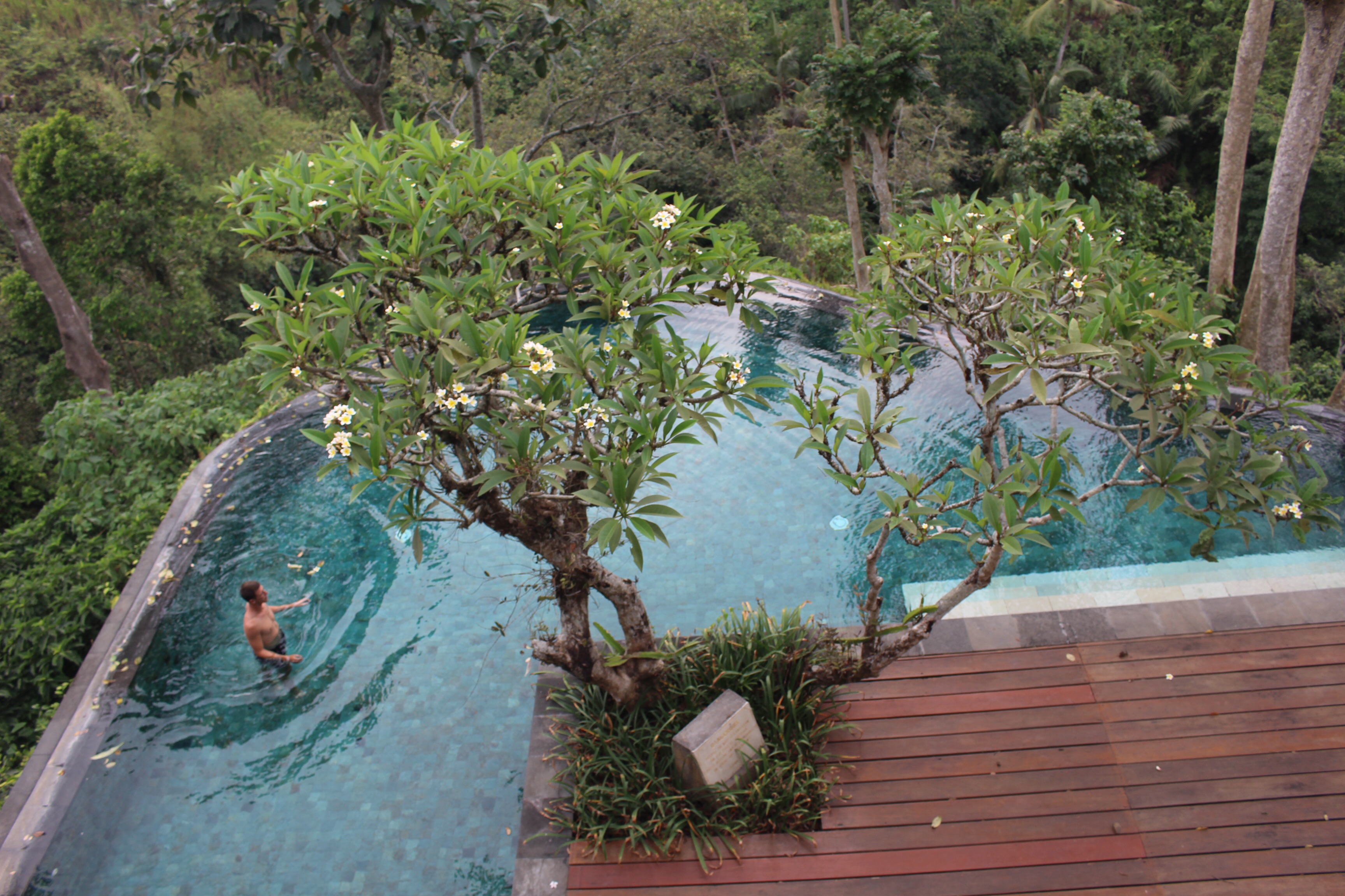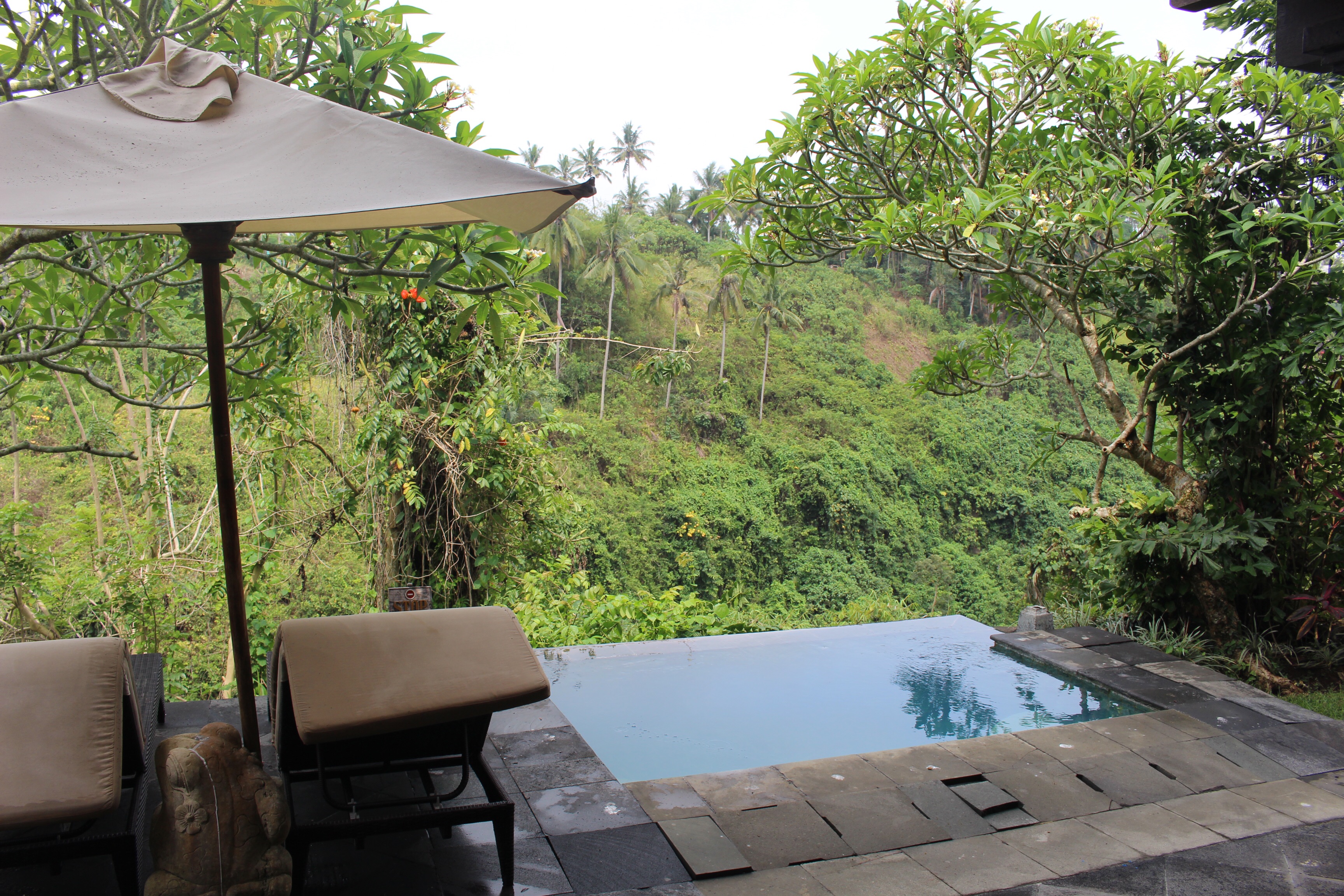 We rested a lot in the air conditioned room, and we ate mostly western food (great breakfast with bacon and eggs, and good pizza at night); we got massages at the resort, and hung out some in our private pool. But we also took the shuttle several times into the town of Ubud.