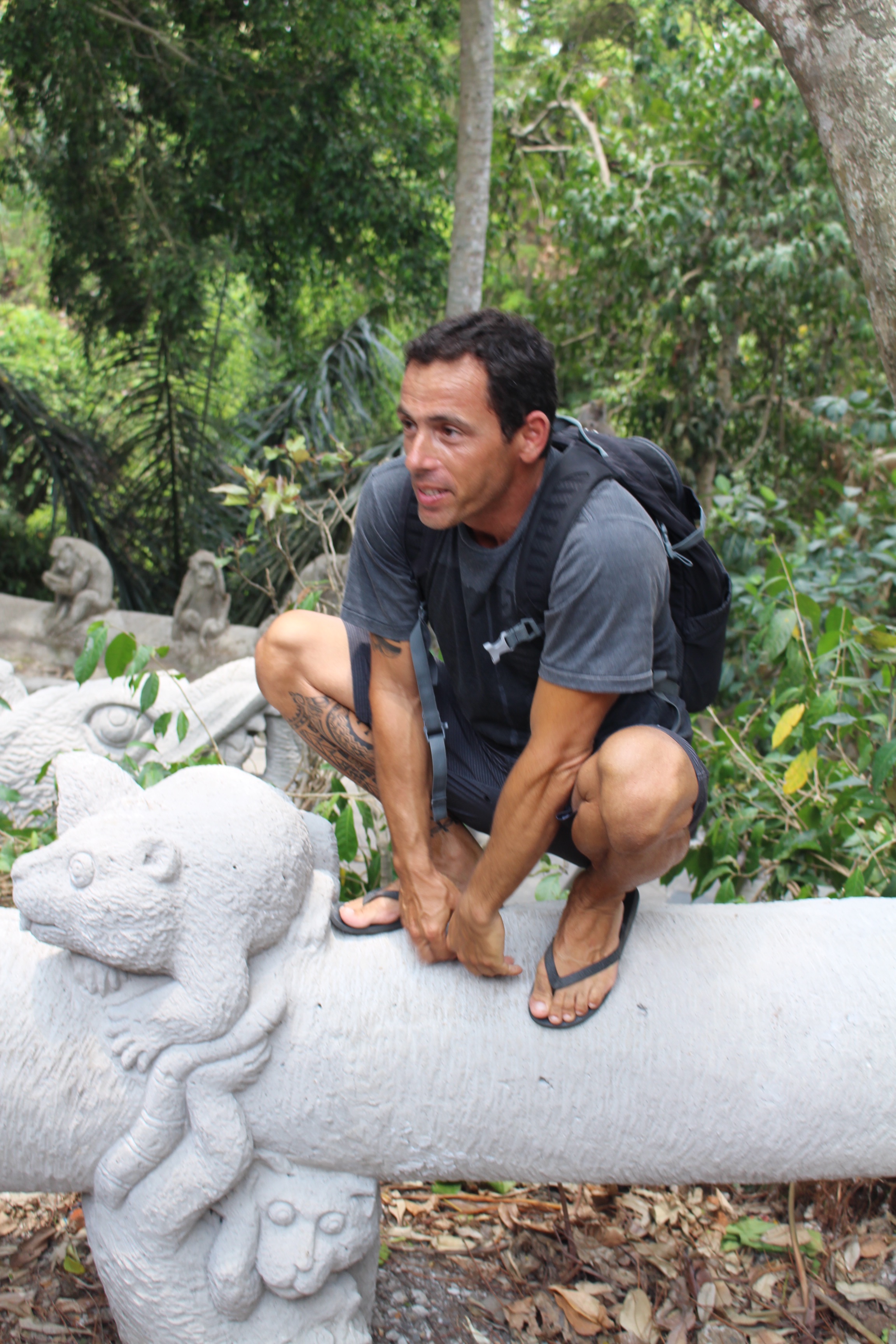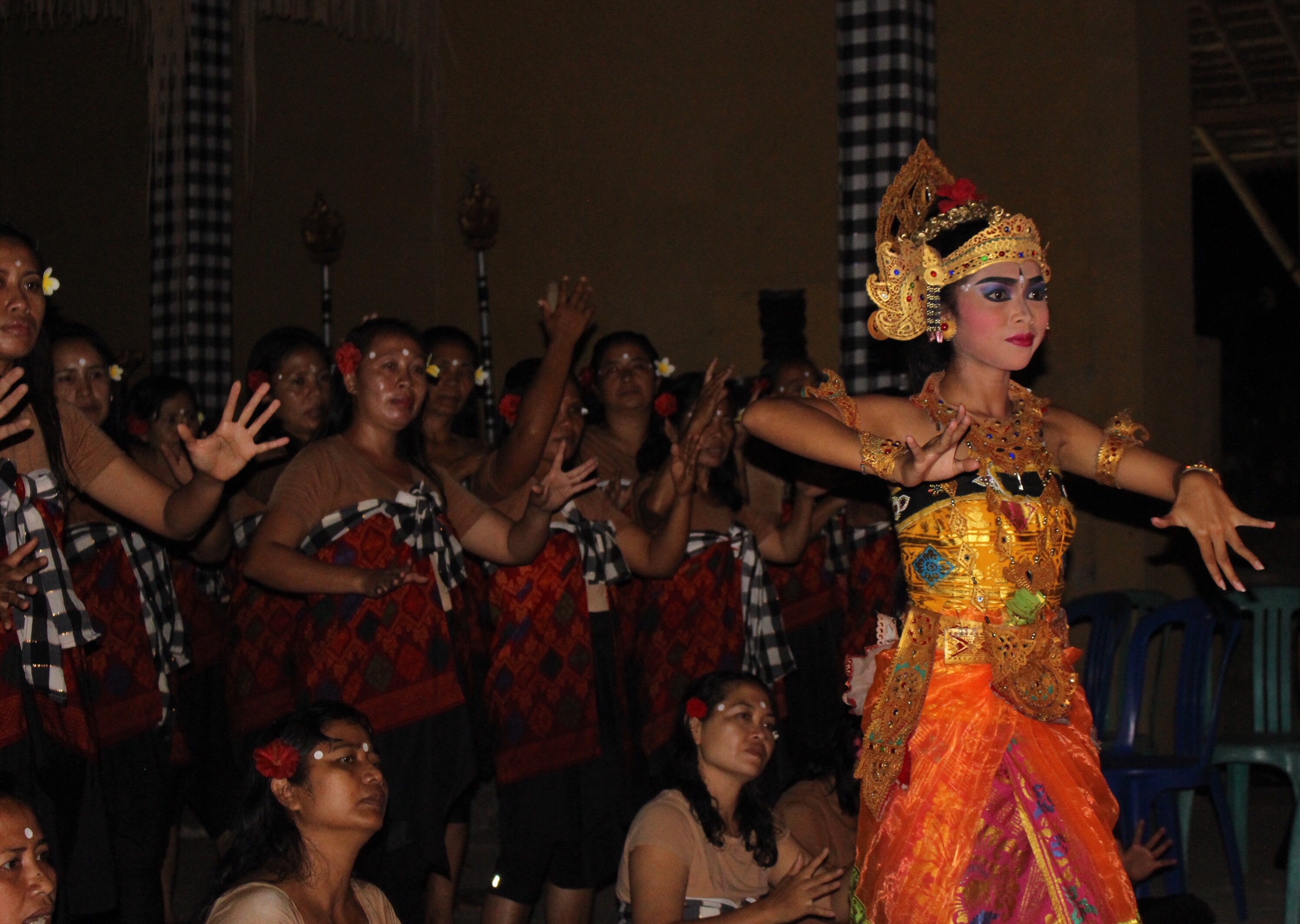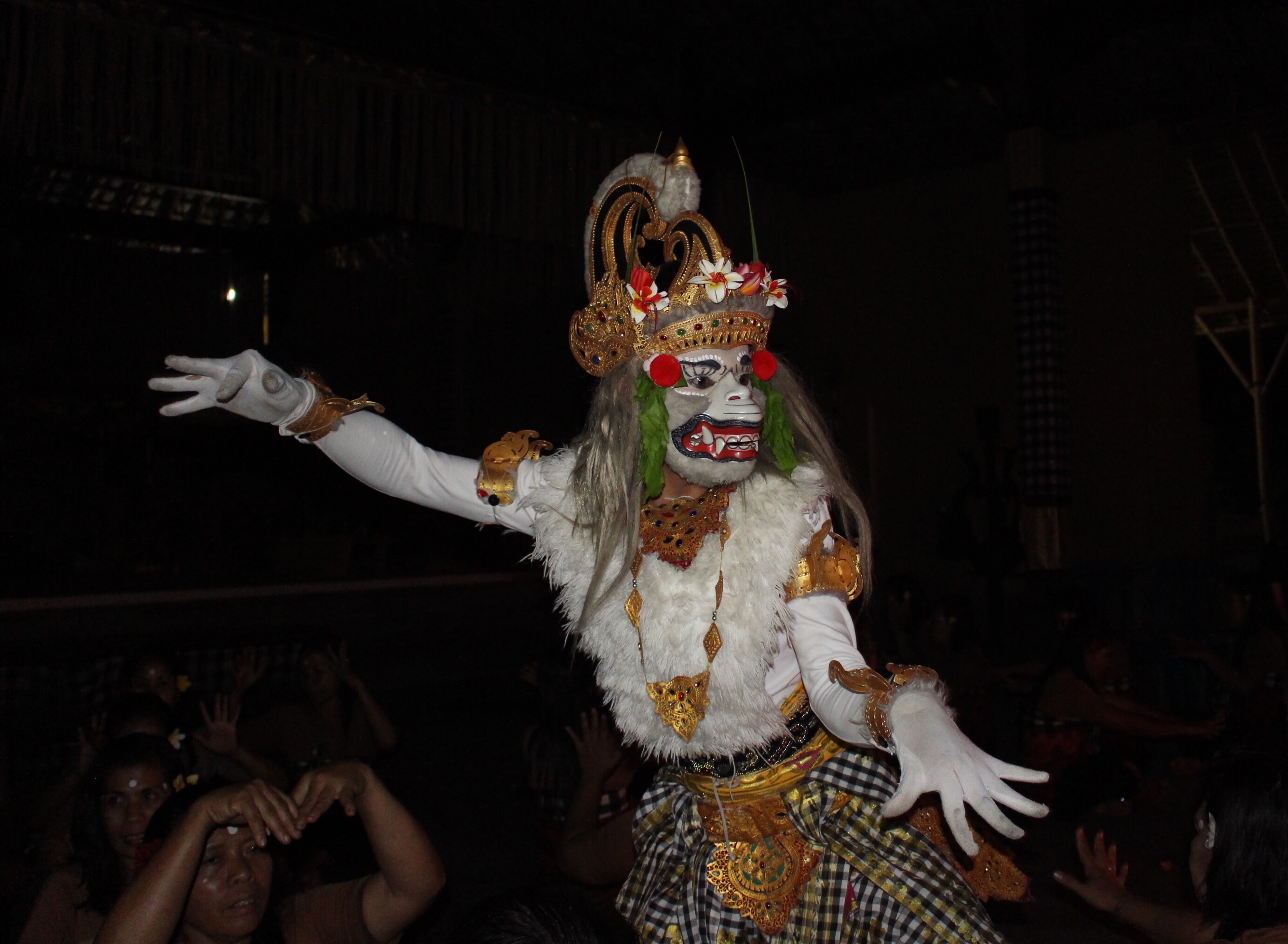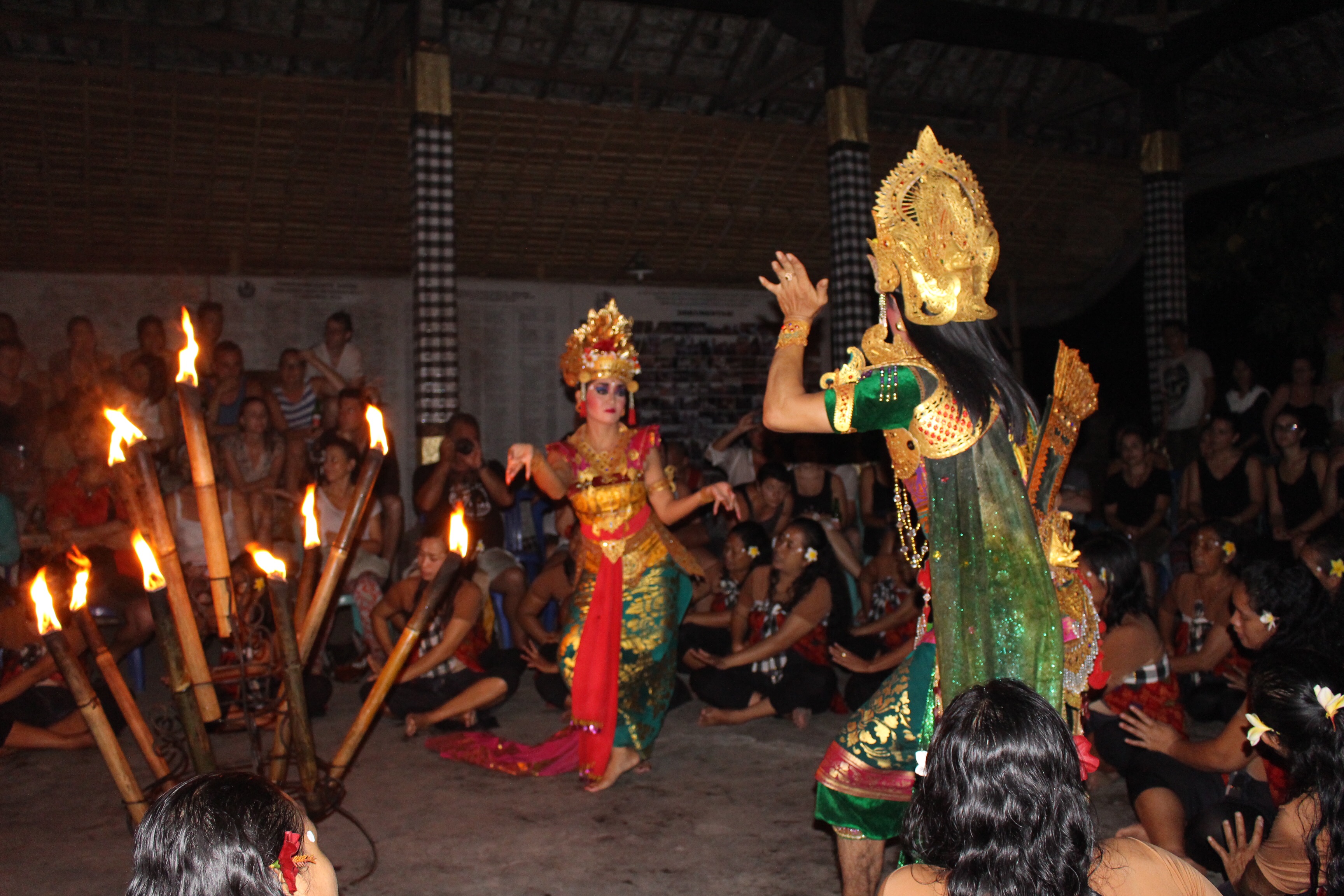 Ubud is a fun place, though totally “touristic.” Hundreds of little shops and restaurants, and sidewalks filled with mostly white people speaking many languages. We bought our share of crafts. We enjoyed strolling through the monkey forest. We attended two dance performances. The first was a Women’s Kecak Fire Dance in the outdoor grounds of a temple. Just as the show began, it started to rain — for the first time this season! The performers continued for a few minutes, until it became clear that everyone was getting soaked. Then we all hurried up the street to another temple with an indoor space. It was very funny seeing one of the cast perched on the back of a motorbike with a lighted fire stick in each hand, switching venues. The rain made the evening all the more special, and we thoroughly enjoyed the show. We returned for another type of dance/music the next night, which was merely…interesting.