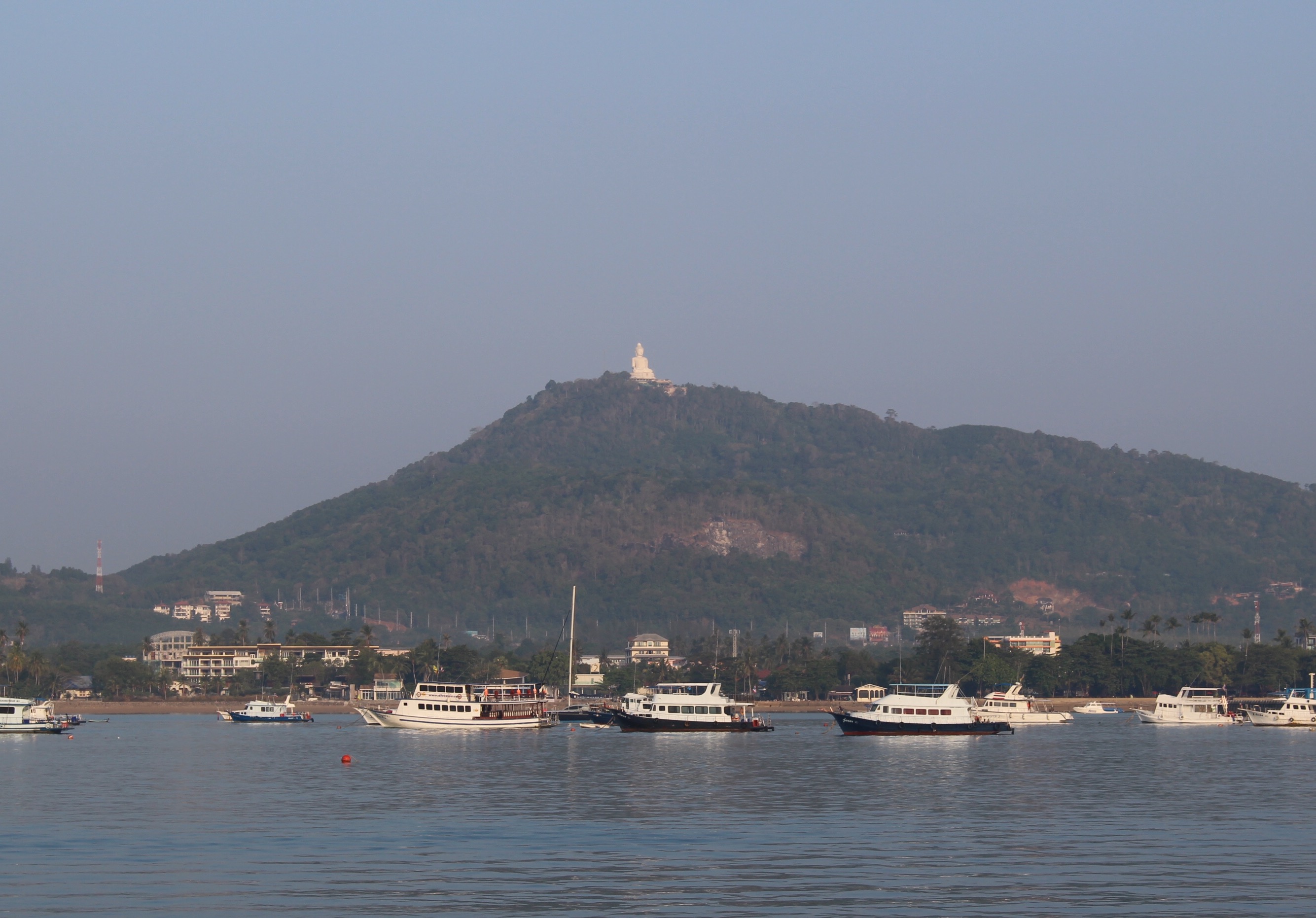 We checked out with the Thai authorities yesterday. Most paper pushing that I’ve seen anywhere on this trip! But all in air conditioned offices, so we didn’t care. Today we “left” — just sailing around the south end of Phuket to a neat little anchorage off an almost hidden beach (with tourists coming and going constantly in longtail boats until sundown). Everything here (southern Thailand coast) is incredibly touristy — tour boats going everywhere by the dozens, resorts and restaurants and bars wherever you look, and local girls hanging out in the bars inviting the foreigners to join them…
