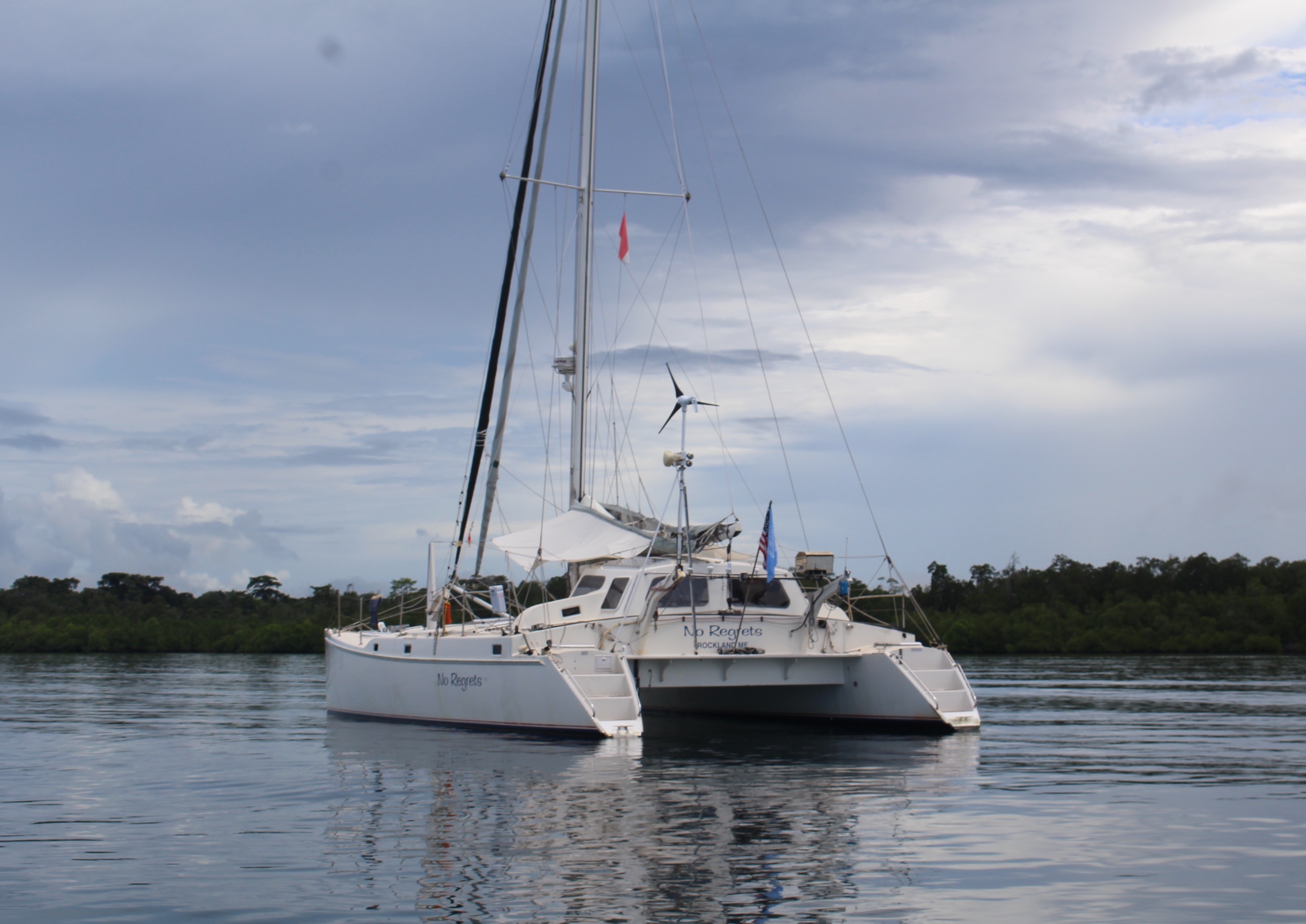 Three dugout canoes with kids came out and hung around the boat, plus an older fisherman. They spoke no English beyond, “Hello Mister.” I wish we spoke the same language, because I think this is a magical place, and I’d like to hear more about it. But we were busy with our latest gear failure (salt water pump used in the galley and also needed to make fresh water), and preparing dinner. The kids lost interest after a while; the fisherman hung out and asked us for a mask and snorkel. We don’t have extras, so we had to say no. I offered him a Coke as a consolation prize, which he accepted, but then asked again for a mask & snorkel. Oh well.
