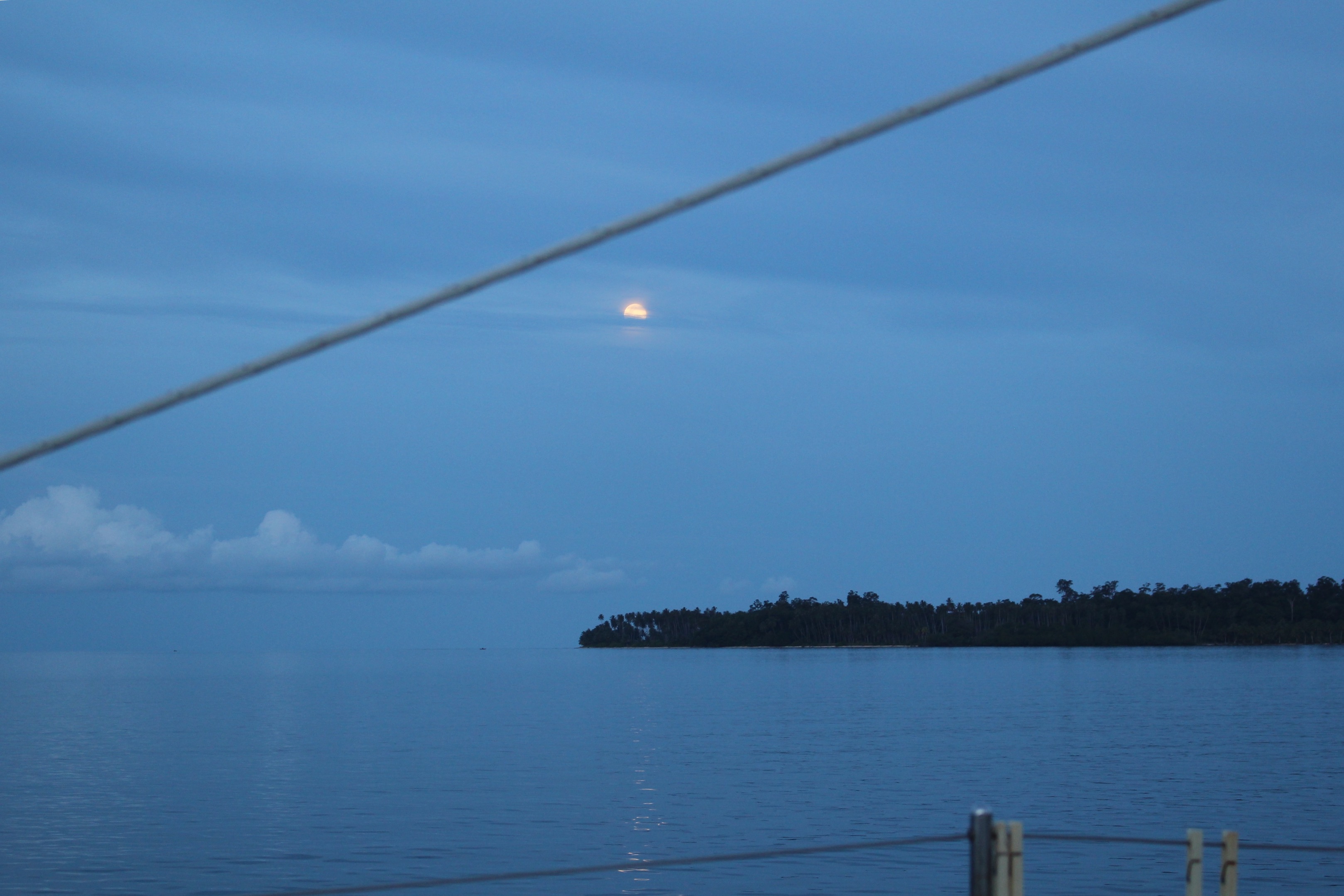 Full moon. Beautiful night. No internet here despite a great cell signal. Some rock music coming from the village, makes an interesting counterpoint with the fishermen paddling home in dugout canoes…