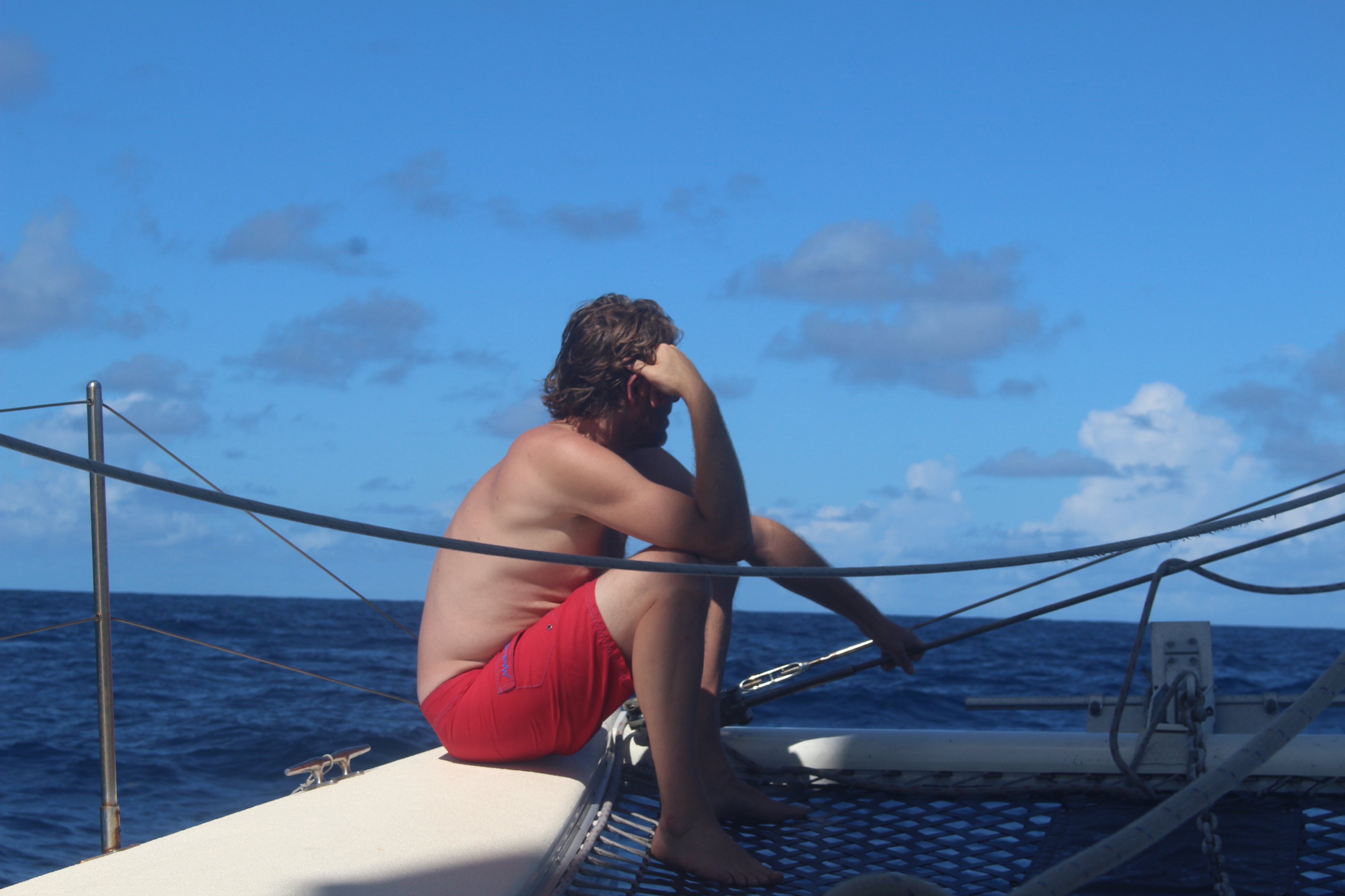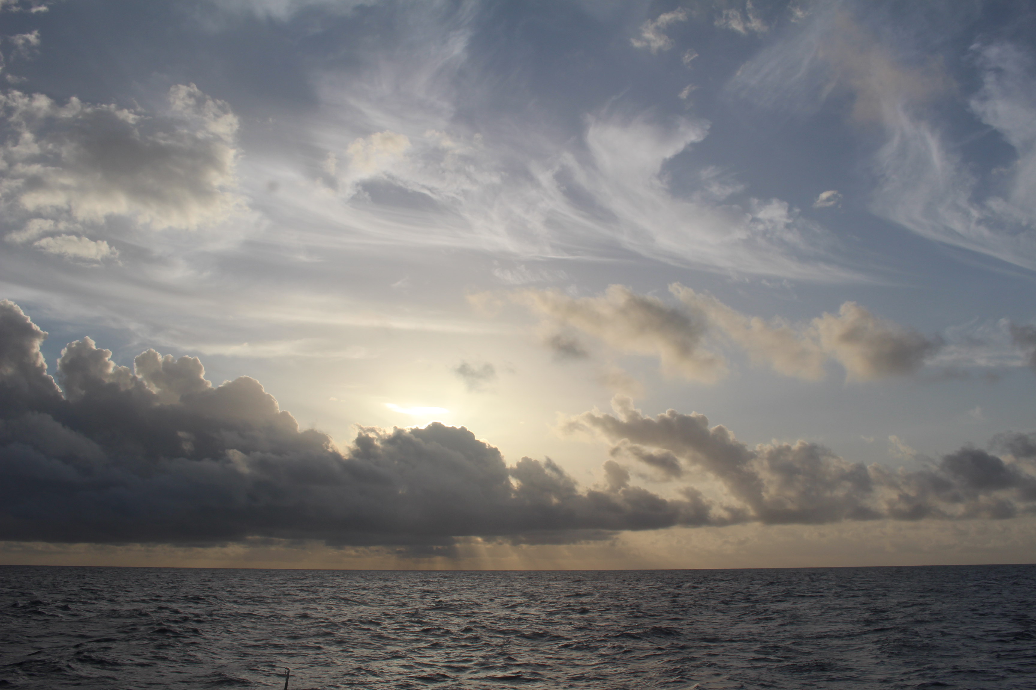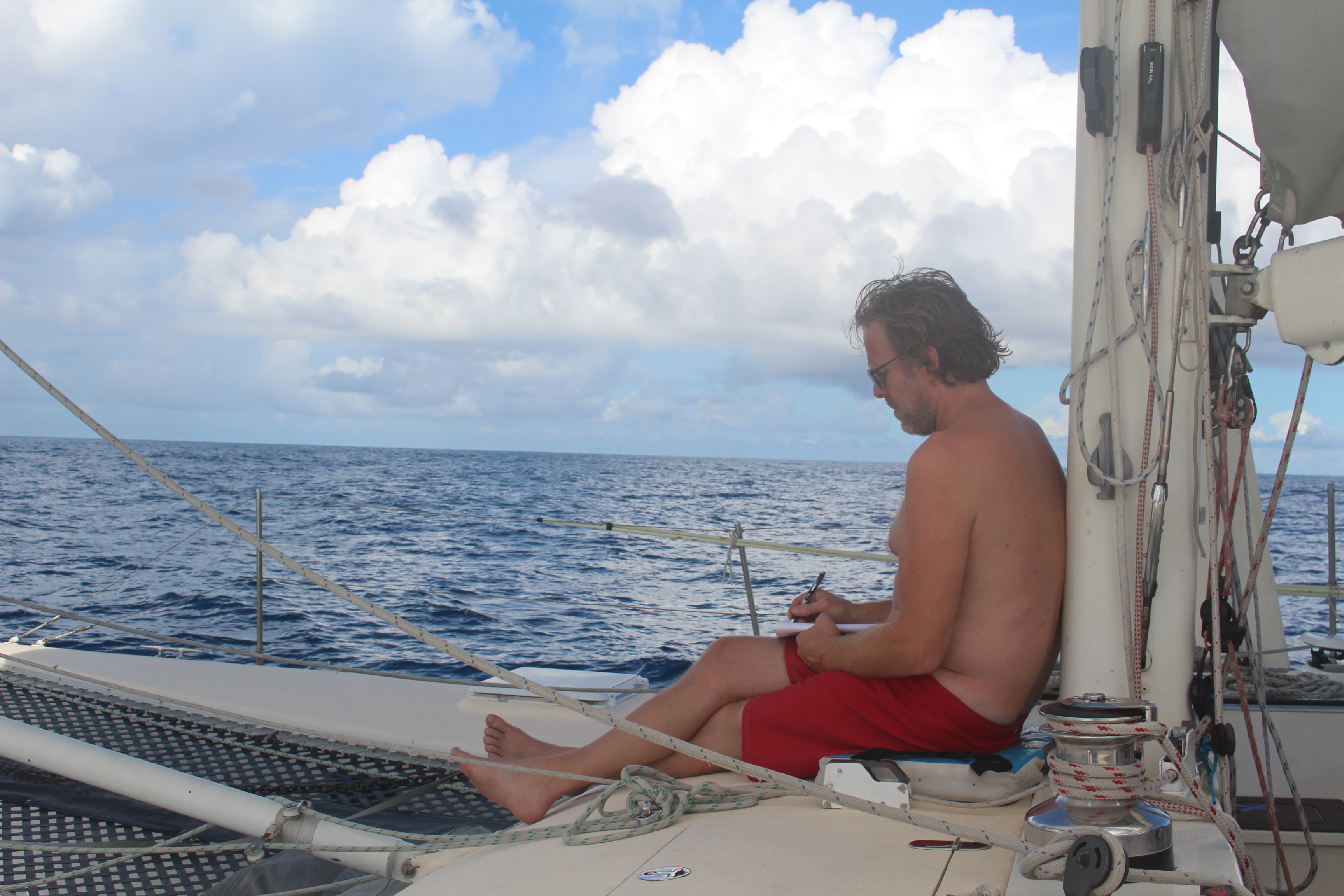 Silence again. Technically Josh is already on watch, but we tend to hang out for a while in the cockpit, letting the night wash over us, watching the moon rise, checking the clouds to windward to see if they are potential squall material. Then I set my alarm to 10:53 and try to settle in for some sleep. Some nights I’m not ready to sleep yet, and I lie awake with my thoughts. When the conditions are peaceful, as they are now, not sleeping doesn’t much matter. I can take cat naps during my watch if I need to. In challenging conditions I would be concerned about not sleeping when I have the chance.