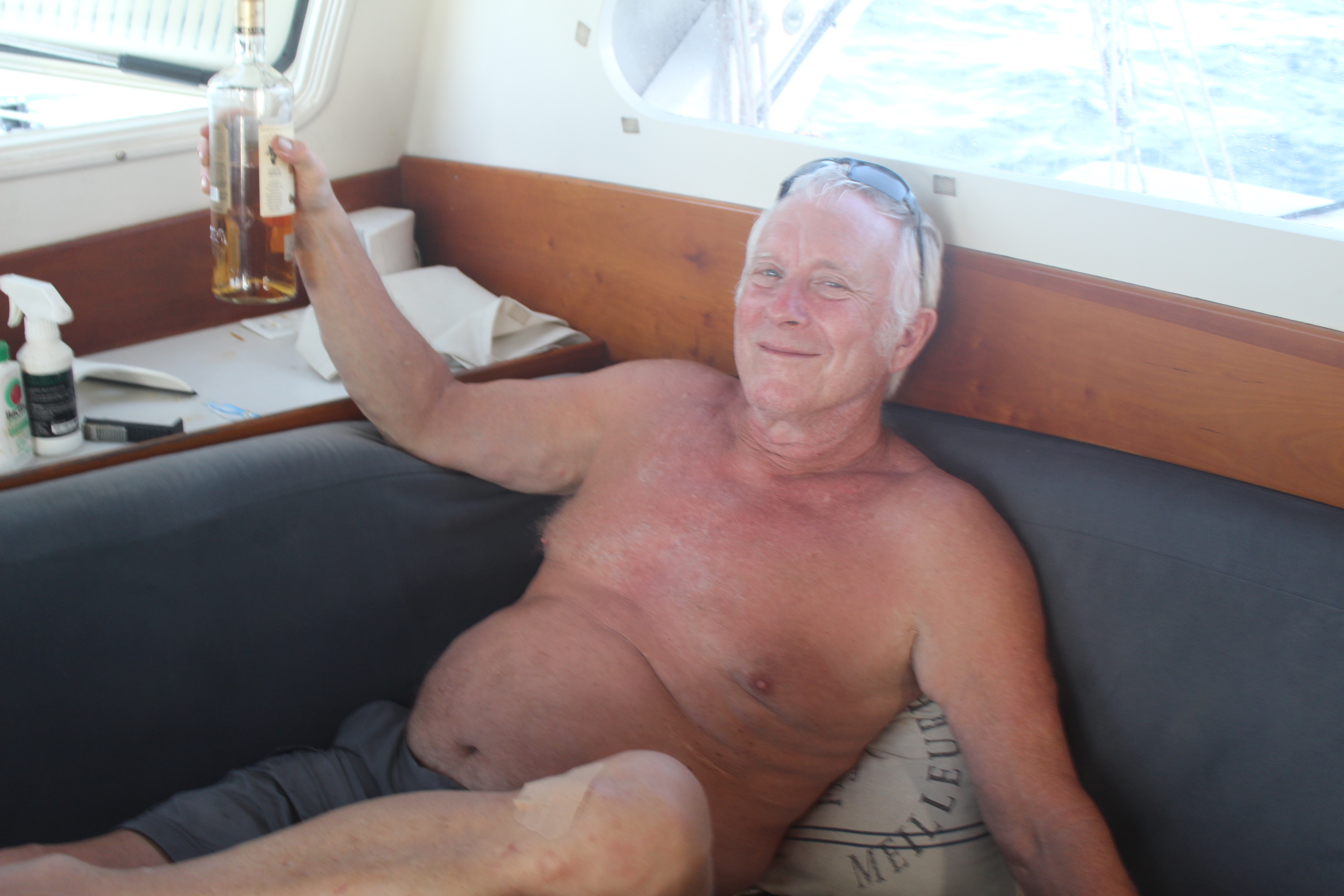 I make wraps for lunch, finally using up the stew Josh made with stock from a fish head. The head was about all we had by the time we reeled the fish in. Something, probably a shark, took two-thirds of the fish along the way! The third we had left was still enough for a baked fish dinner, plus the stew that was dinner, breakfast and lunch. We have been eating very well so far. We still have fresh fruit and veggies, though not for long.