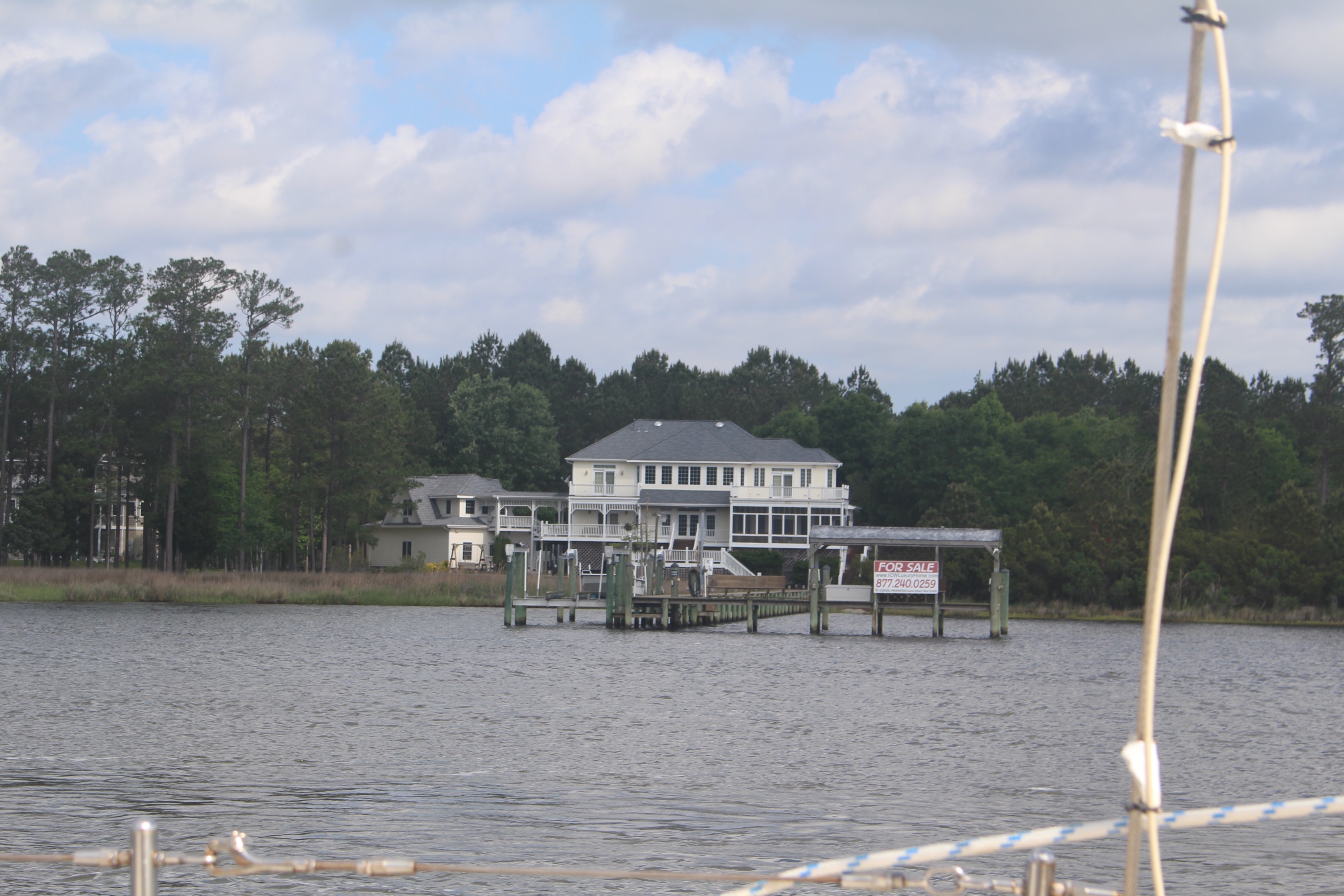 Lots of fancy houses with private docks on the waterwayPamlico Sound anchorage #1