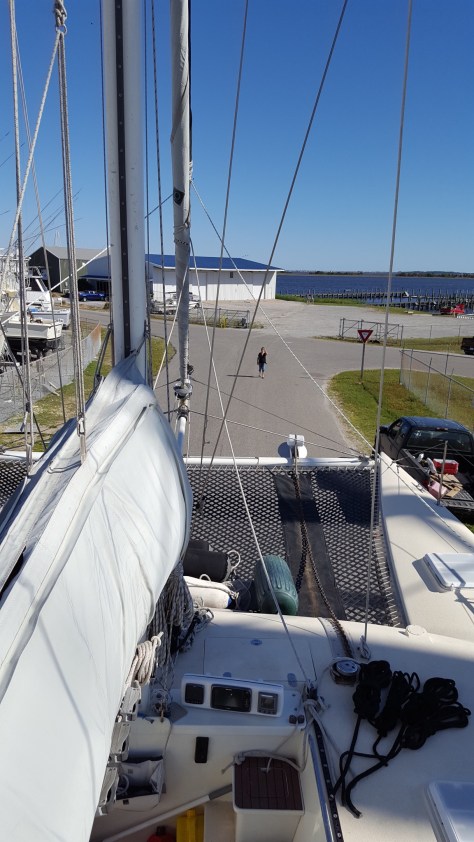 In the morning we were off one last time, again with a good breeze, to Wanchese. So…if things go well, this may be the end of the line! Done. Our mission now (which Bob, Joe and I got a start on over the past several days) is to clean everything and remove three years (and more) accumulation of “stuff” from the boat. Monday the boat will be hauled, so work can begin on the bottom and the saildrives. Then Bob and Joe will depart, and Hallie will arrive to spend the week working with me. Then we show the boat, and head home. Maybe I will be back in a month to sail the boat to New England. Or maybe the boat will no longer be ours. It’s all journey…