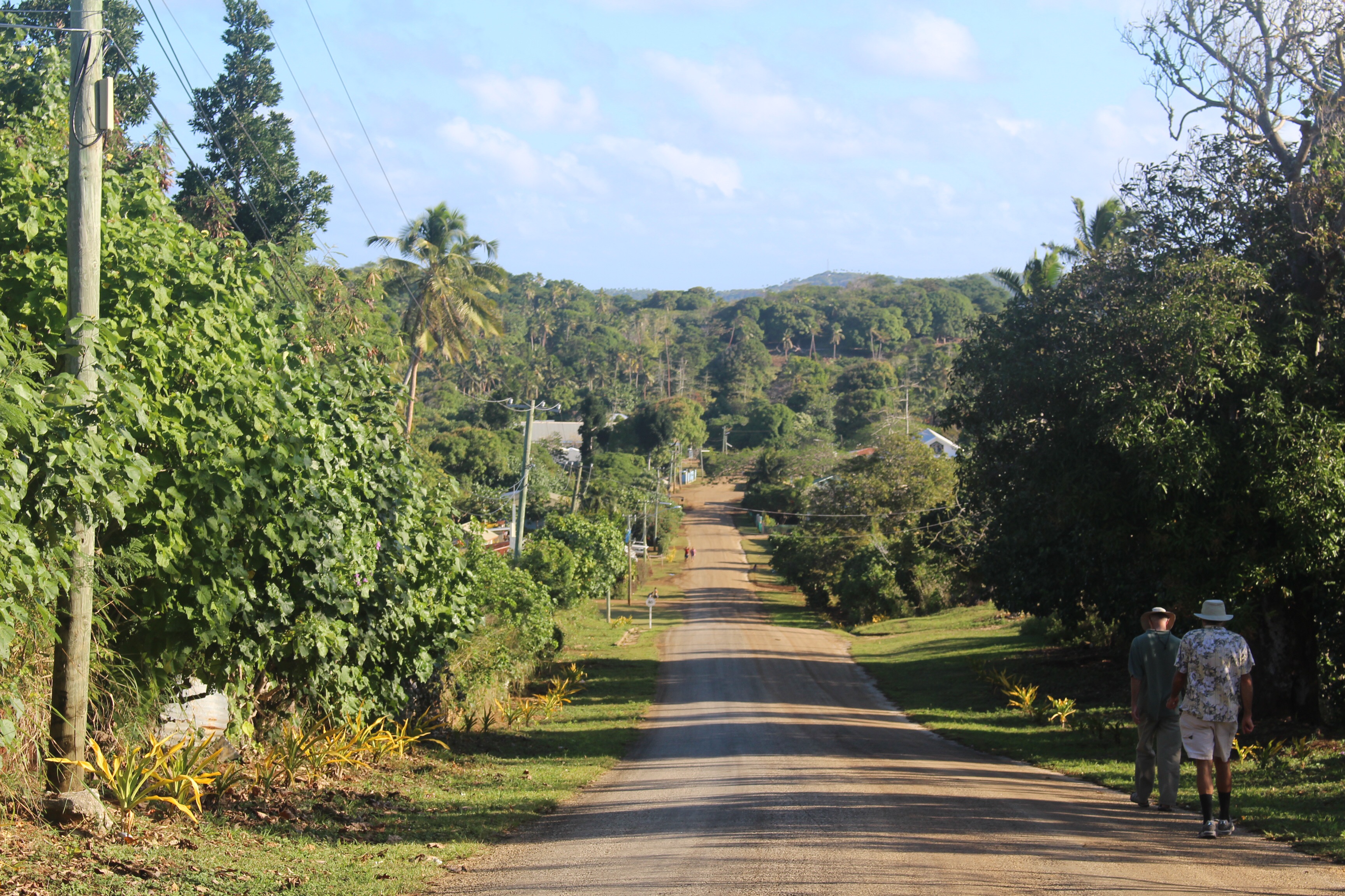 We walked wherever the road took us, which turned out to be a beach with a view of one of the anchorages we hope to visit. The sun was getting low when we turned back, and we happily accepted an offer of a ride. We got out at a guest house we had passed on the way, where we said we’d stop for a beer on our way back. The woman we had spoken with was gone, and instead we met Ian and Keith, an Aussie and a Kiwi. Ian said it is rare to have an Aussie and a Kiwi in the same room without an argument, but the two of them are long time friends, and long time residents in Tonga.