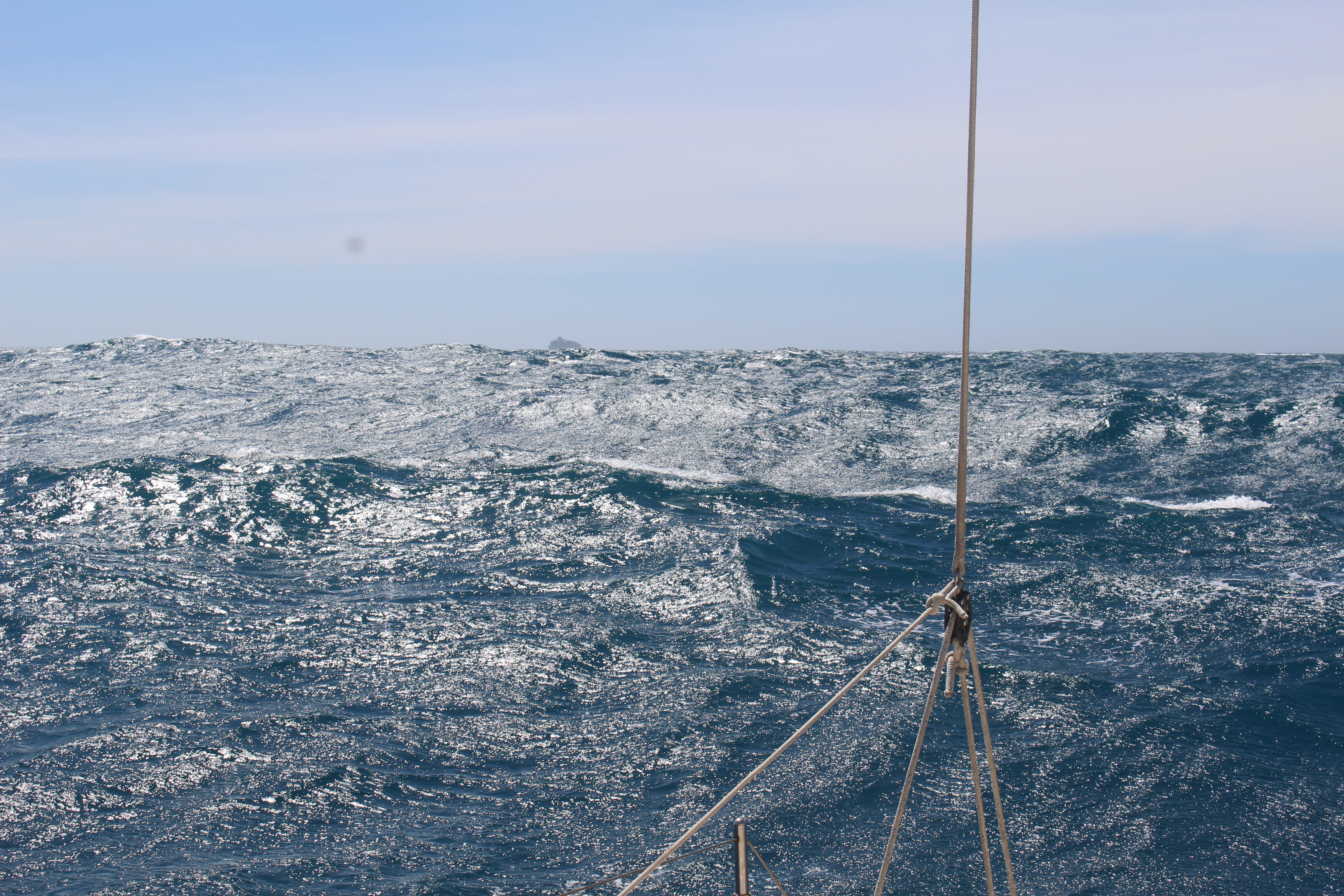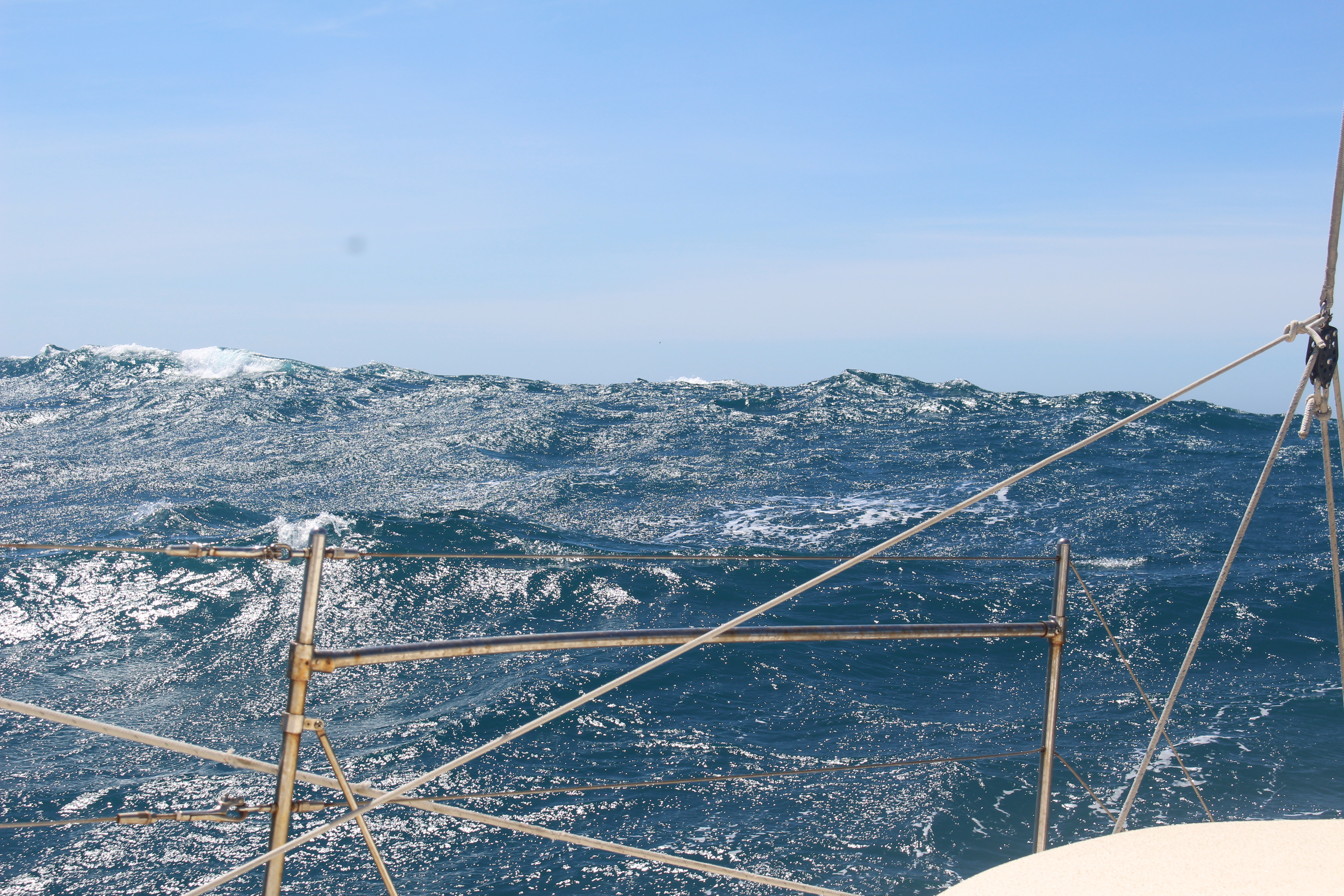 First we have to get around the Cape of Storms, to Cape Town. If the weather forecast doesn’t change between now and tomorrow morning, we will take advantage of a short window, and sail to Mossel Bay. That’s still on the Indian Ocean side, but it chips away at the distance to go, increasing our chances of making Cape Town when the next opportunity comes.