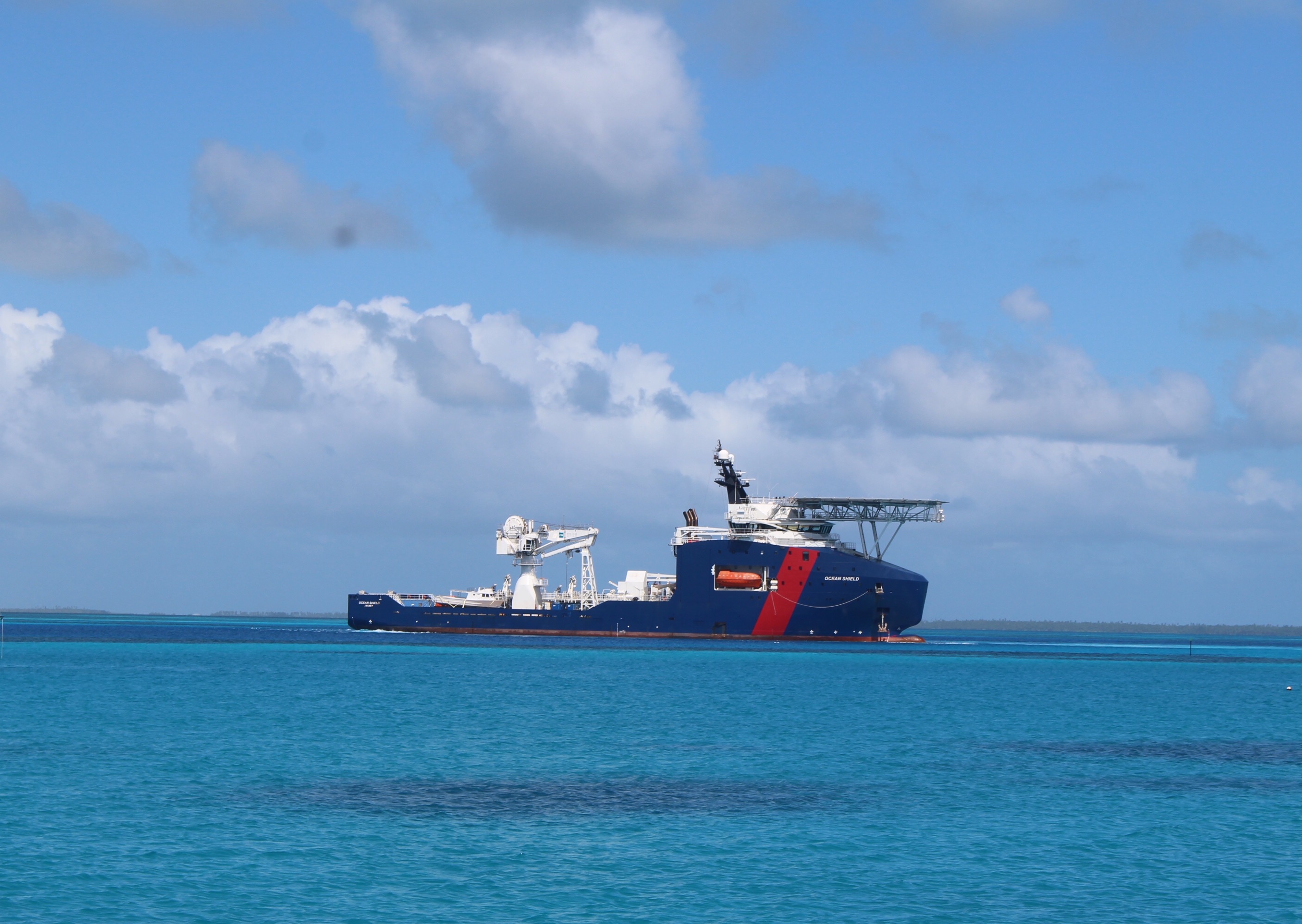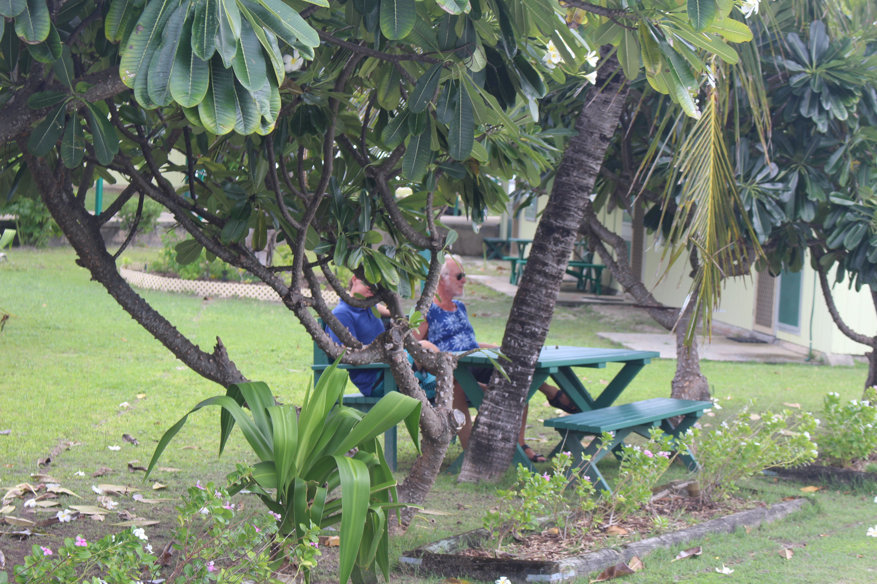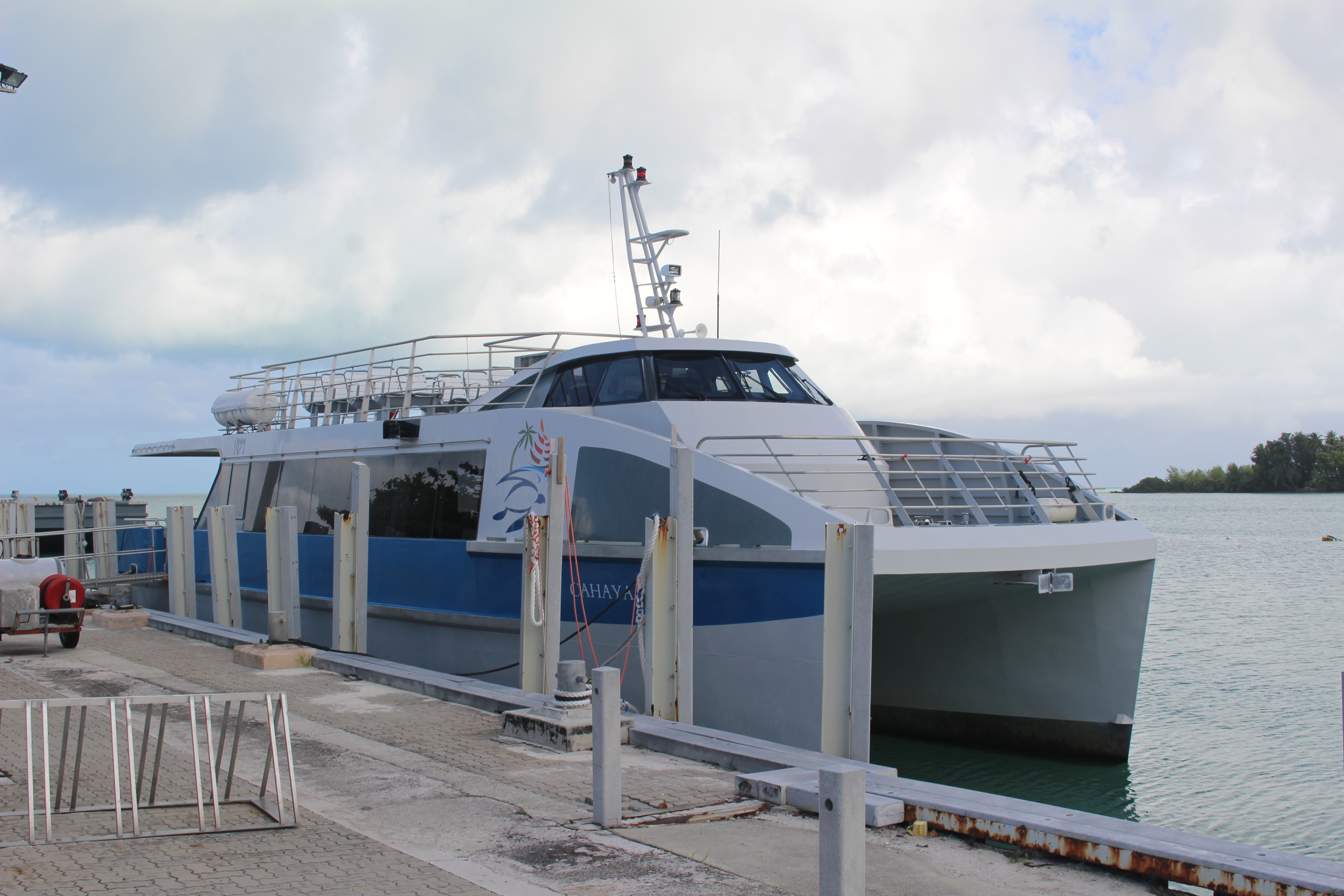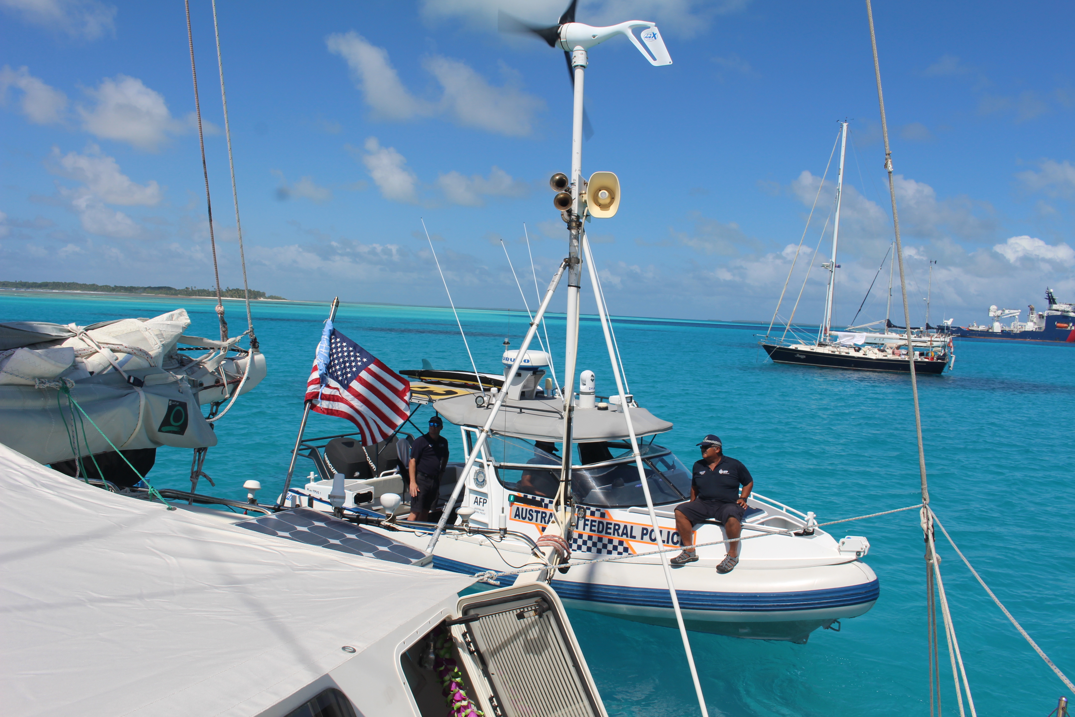 Dove to do a last scraping of barnacles, and noticed that we have a chunk missing from the bottom of one daggerboard. Not sure how/where/when that happened. Another item for future repair. Bought our expensive diesel. Filled a propane tank (also expensive). Got our fresh produce (not really fresh, since it is flown in from Australia; also expensive). Watched a movie with dinner the night before. Got our last Internet licks.