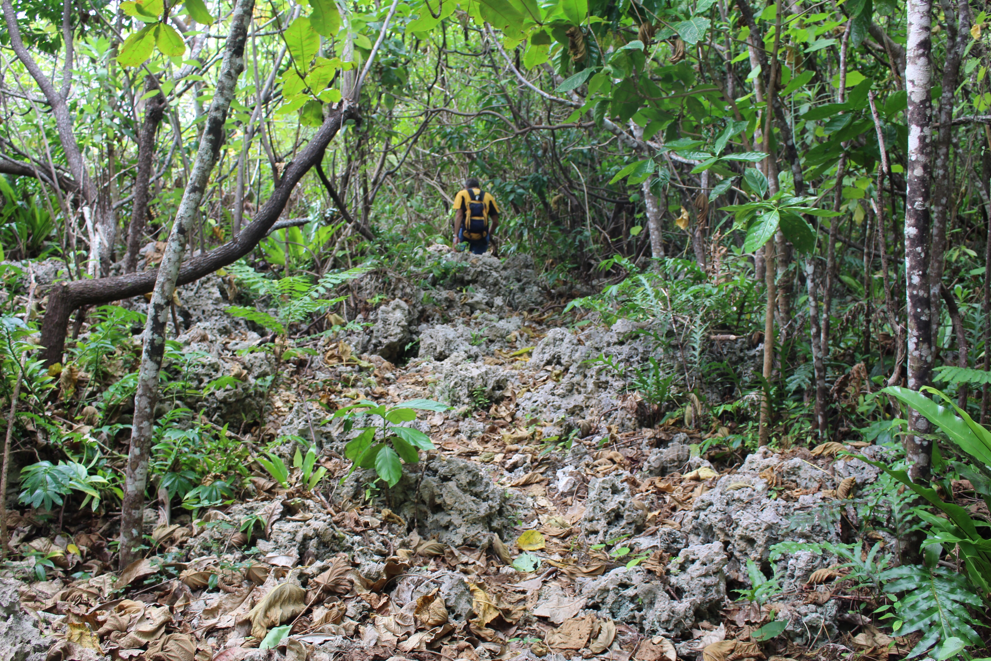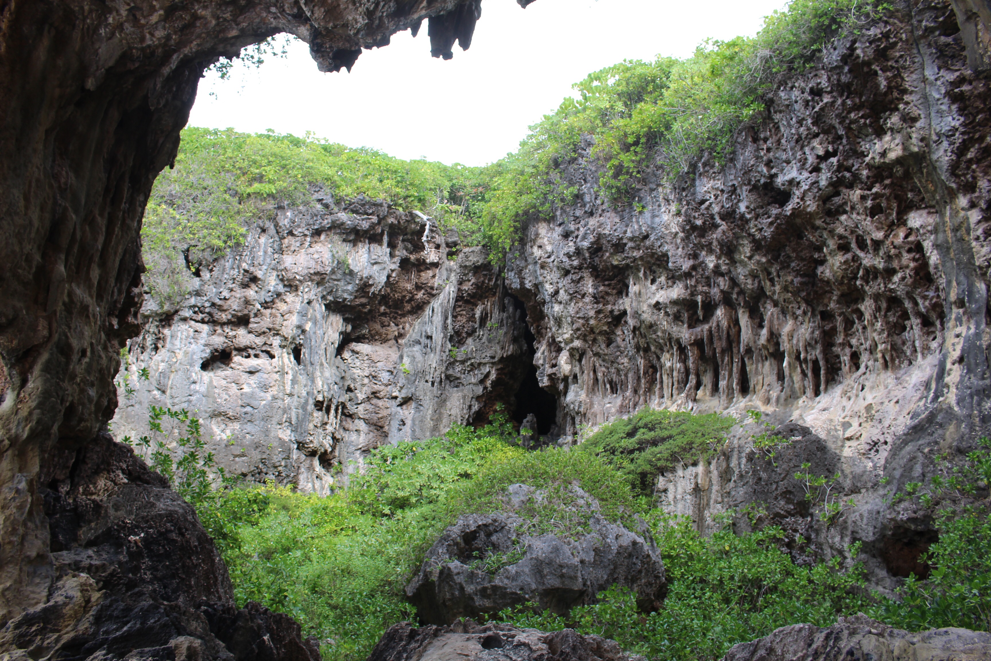 The country of Niue is a single island about 13 miles long and 8 wide. It is a “raised coral atoll,” meaning that it used to be an atoll like the Tuamotus, but the sea bed later pushed up so that it is now a plateau about 50 meters high. The ‘rock’ of the entire island is limestone — old coral.