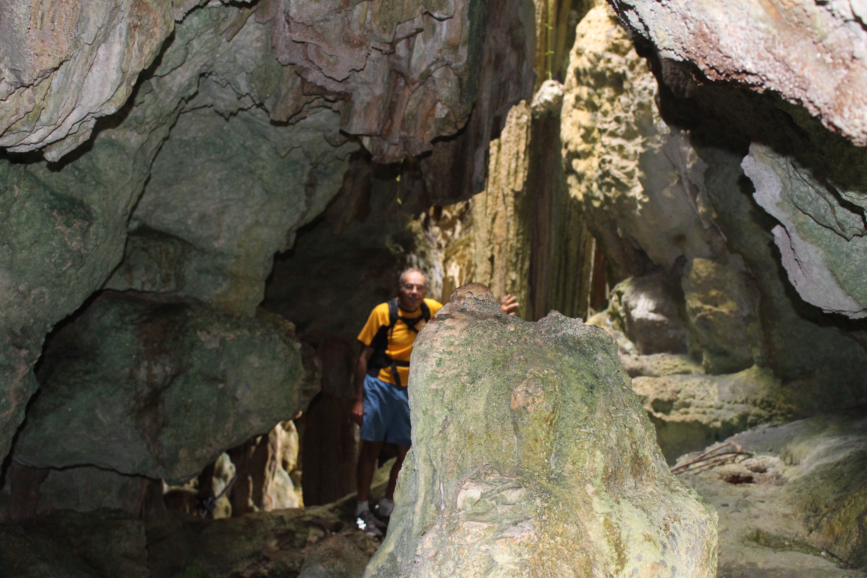 It is a quiet place. But a fun place to explore. There are dozens of “sea tracks” from the road (up on the plateau) down to the ocean. These are paths, often with stairs to help in the steep parts, to get to the views, the caves, the chasms, the coral formations that shape the island. We rented bicycles and rode to some of the choice places, per the tourist info.