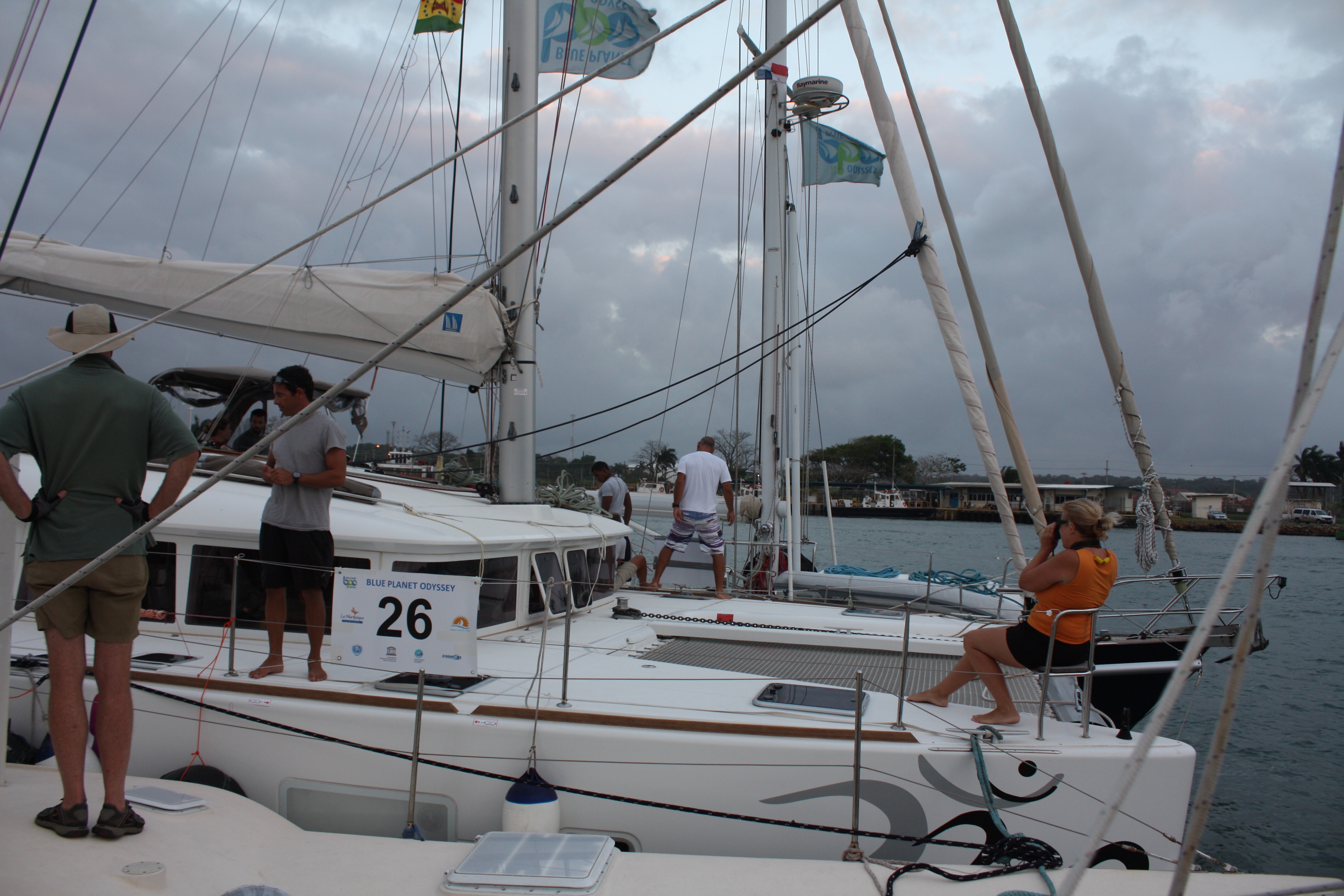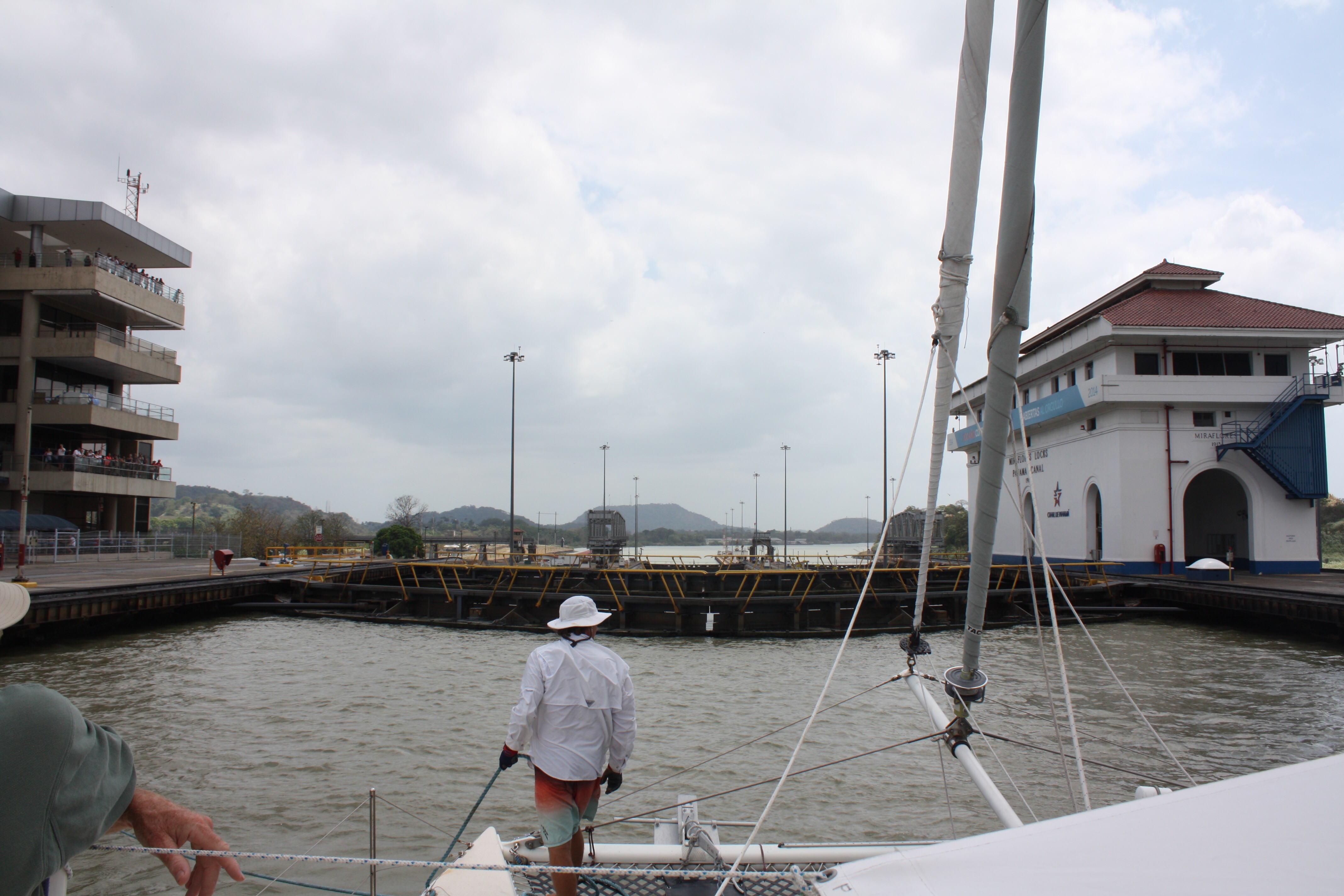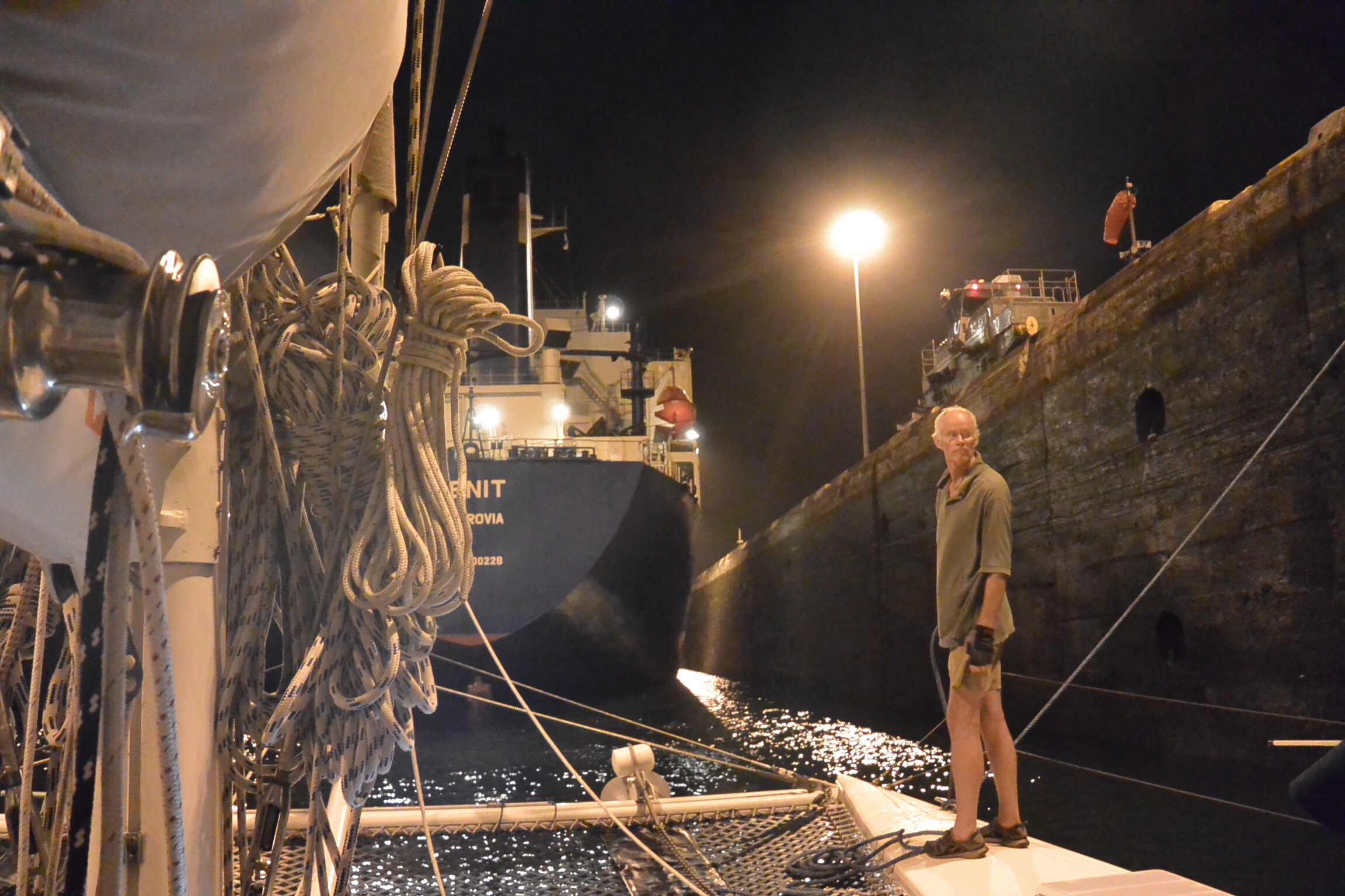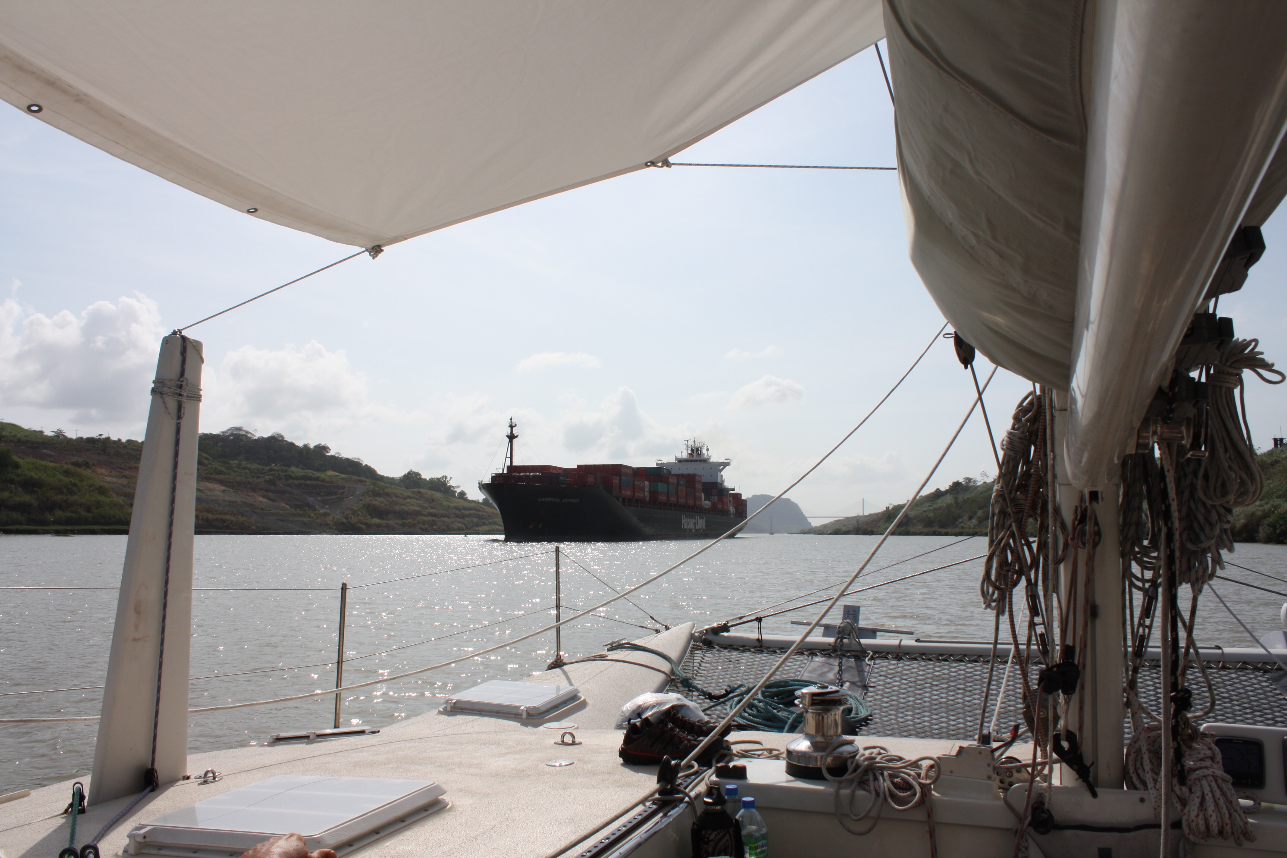 The first batch of six Odyssey boats completed their canal transit today, We are scheduled to transit with four other boats starting tomorrow, probably late afternoon, probably reaching Gatun Lake after dark, and spending the night there. Tuesday should be an early start, and into the Pacific by late afternoon. It’s all a little uncertain because we’re in the middle of Carnival, which is a big holiday here, and we can’t count on people showing up and keeping promises after they’ve been out partying all night…