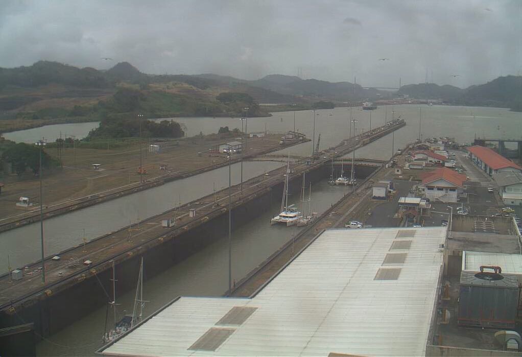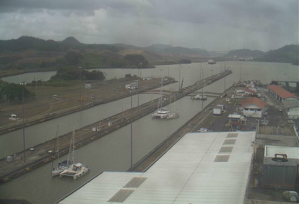 The Canal has web cameras (still photos, not video) that update every 30 or 60 seconds. There are high resolution images for the Gatun Locks and Miraflores Lock. We will pass through the former tomorrow evening, but it will probably be too dark to see us. Tuesday afternoon, though, perhaps around 1:30pm (Panama and Eastern USA time, 1830 UTC), we should be at the Miraflores Lock. The photos are from quite a distance, so don’t expect to recognize anything more than the distinctive shape of our boat. We will have our tracker turned on, so if you want you can watch our progress on the BPO web site, and when we get close to the Miraflores Lock (toward the south end of the Canal) you can check the web cam and try to spot us (and watch the water level drop in the lock).