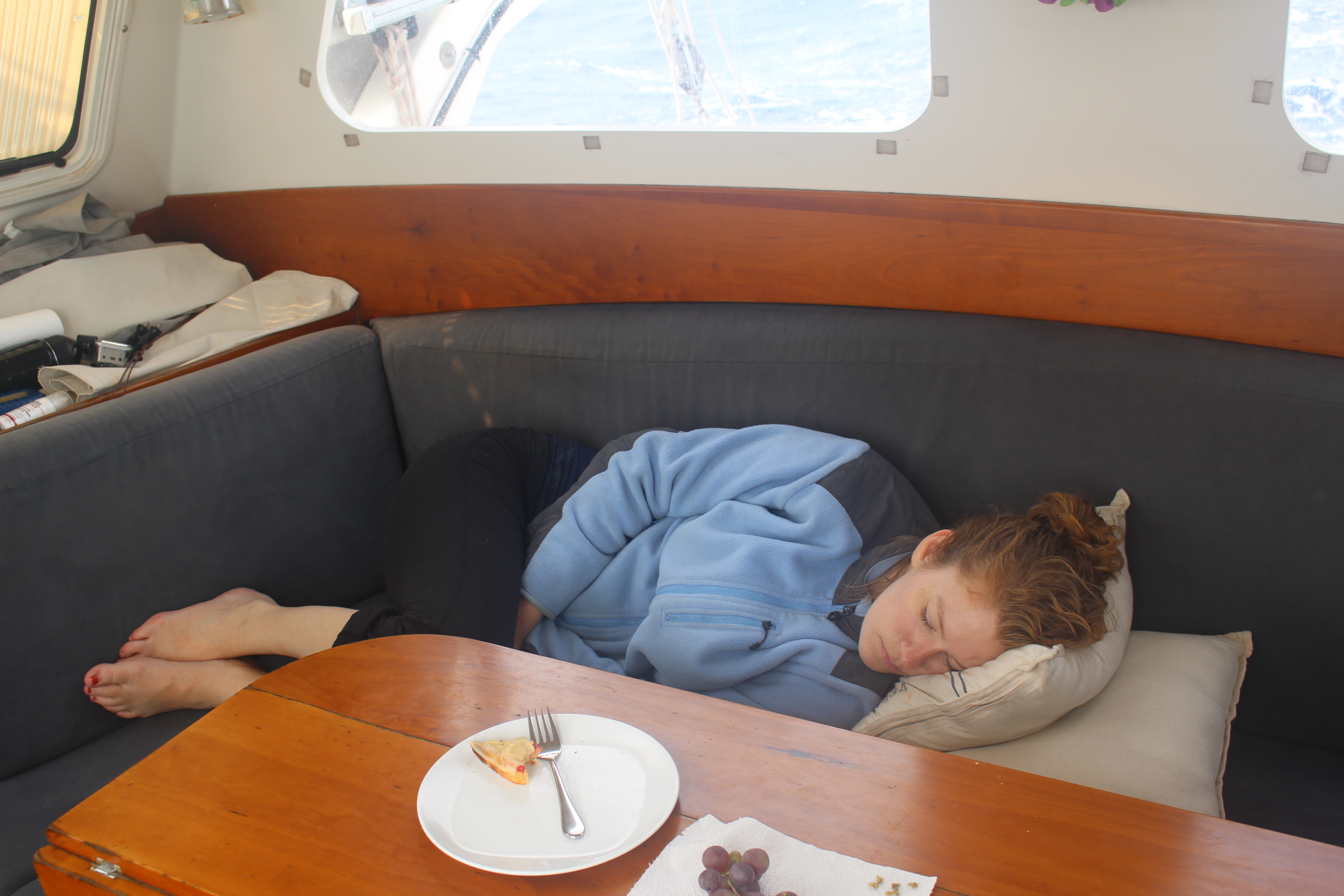 Liam and Nora both wrestled with seasickness (me, too, for a while), but they figured out ways to manage it, and they were always cheerfully on time to stand their watches. Good for them both!