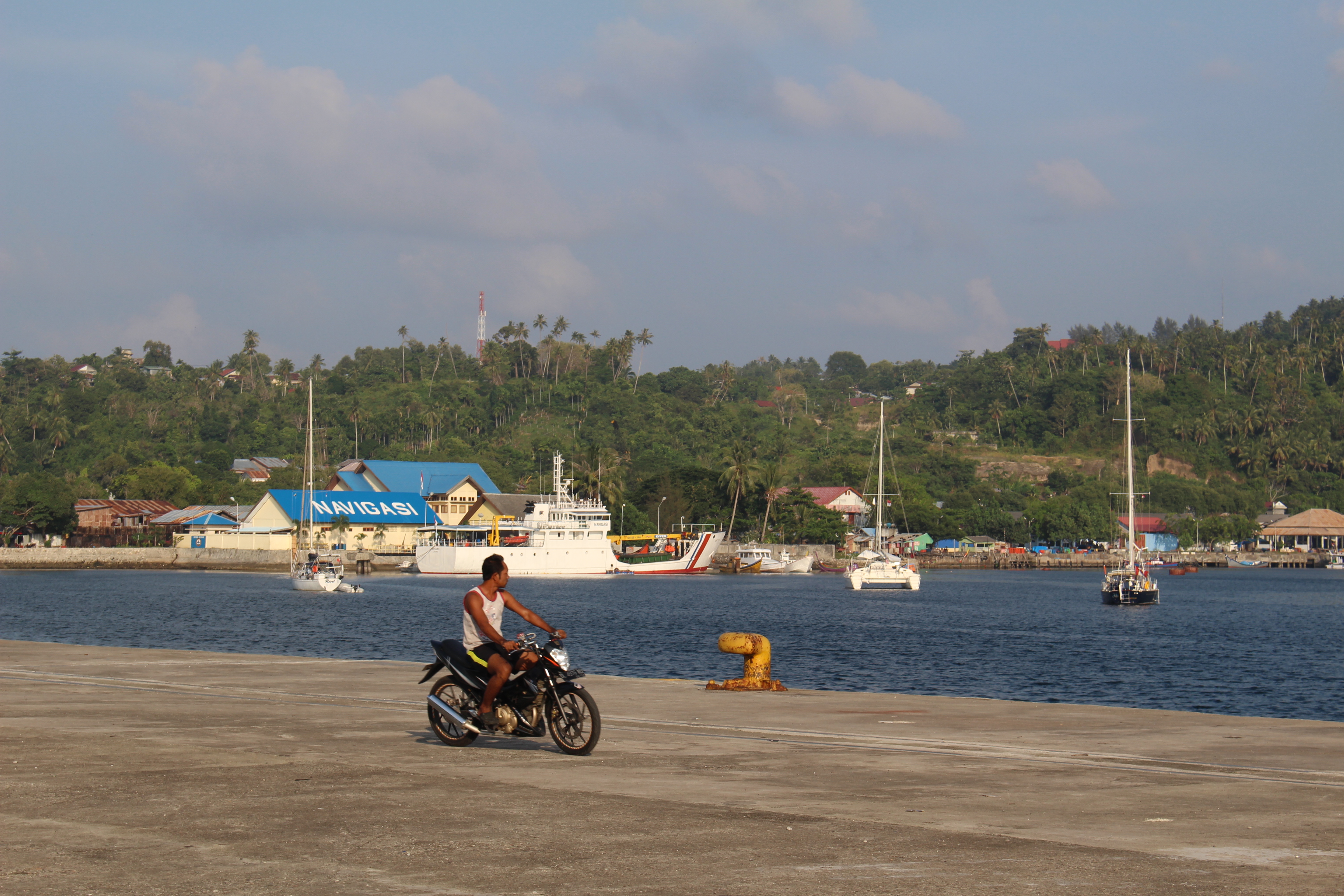 I now get my clearance. He says it costs $5 US. I explain that I don’t have US money, and he agrees to take 40,000 Rupiah (about $3). But I only have a 100,000 note. I show him but don’t hand it over, asking of he can make change. Another guy in the office, who has become my current translator, hands me 50,000. Close enough. All done? Yes, but he says the harbormaster would like a gift of US $1. I’m trying not to lose my cool (actually, have been trying for the past hour). Nodding toward the payment just made I say, “Didn’t I just give you a gift?” No problem, it is not required, goodbye Captain and I hope you have enjoyed Sabang.