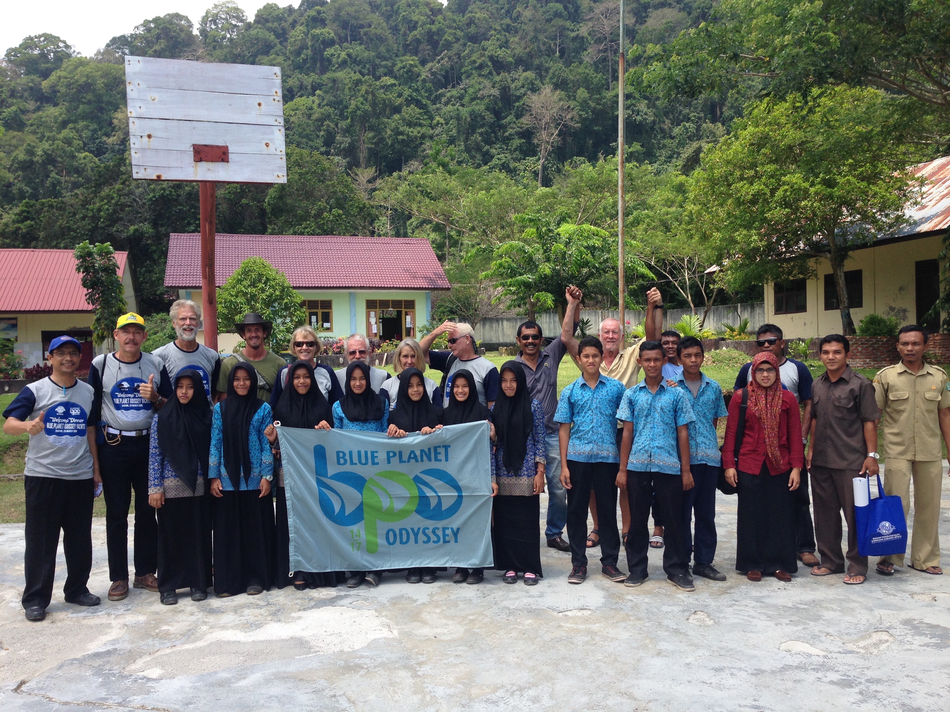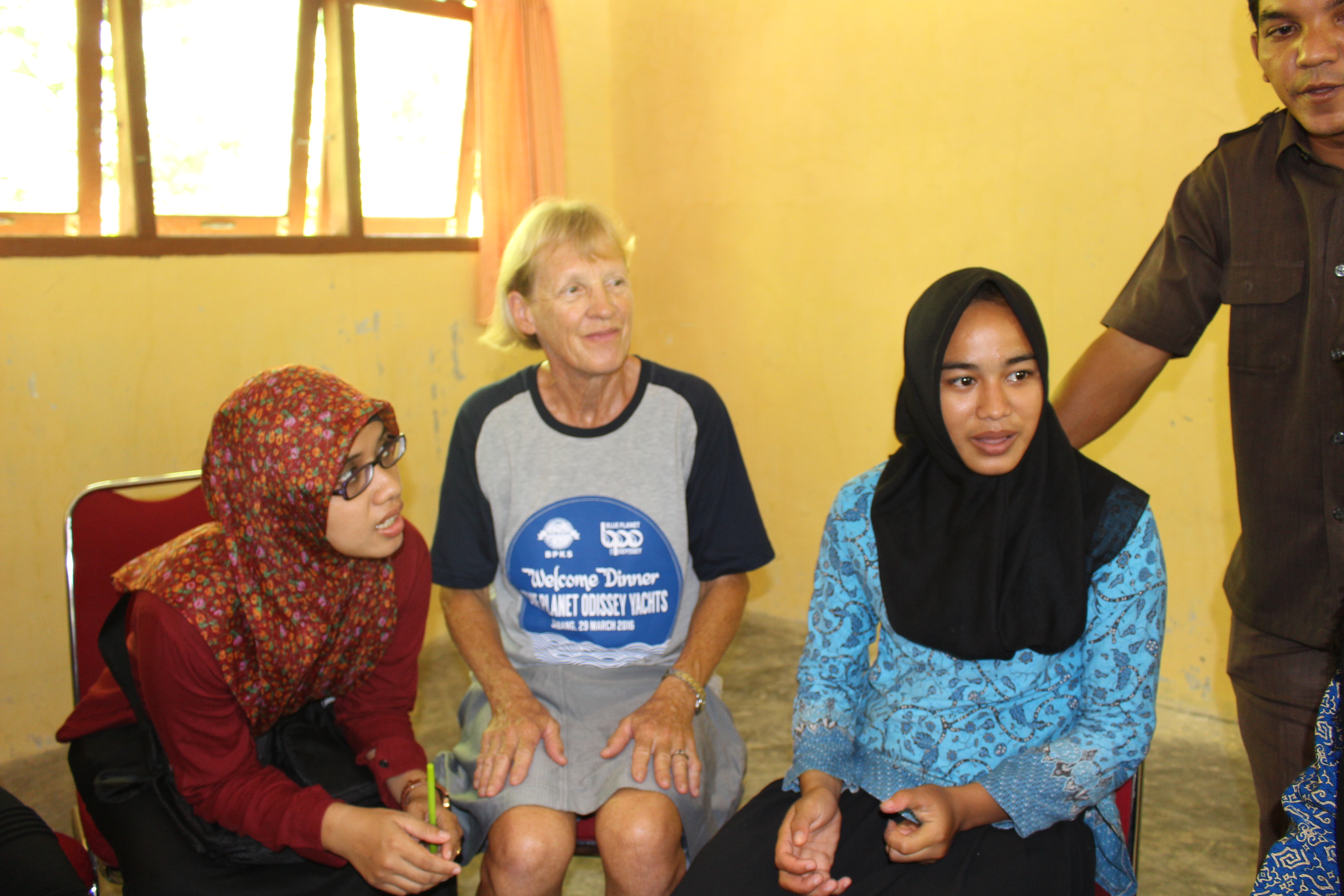In the morning a few fishing boats came by to check us out, but all just waved and moved on. We set sail and headed south to mainland Sumatra. We anchored at a surfer beach. The west coast of Sumatra is considered a surfer’s paradise. We met a pair of Australian surfers (our age) living on a catamaran. The owner has been cruising/surfing in this area for twelve years. Where we anchored is a popular beach with the locals. Kids piling into our dinghy when we launch it from the beach; teenagers being towed on inflatable torpedoes, zooming past us while those in the tow boat take photos.